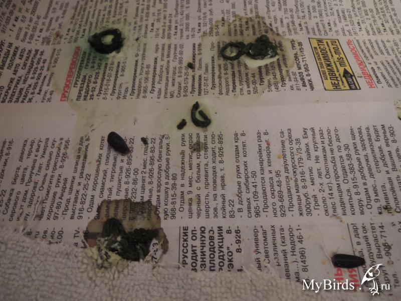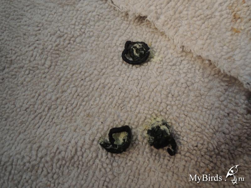 mowglis Опубликовано 10 сентября, 2014 Автор #38 Опубликовано 10 сентября, 2014 Ирина, наверное, начну по Вашему совету сумамед с сегодняшнего дня. Не подскажете дозировку и надо суспензию покупать? Я покопалась на форуме и никак не найду конкретику. Еще у меня есть орнидазол, просмотрела темы с похожими симптомами, там он был назначен. Может, его тоже подсоединить???Как обычно, полная каша в голове, когда всего начитаешься.Мой птен, назвали его Пипин, в принципе крепчает с каждым днем, даже стал уже кусаться. Да-да, именно кусаться, а не щипаться, лучше б он корм так напористо грыз. Глаза тоже уже нет таких обильных выделений, но чуть-чуть вытираю еще. Т.е. в целом получше, но все же не ест и сидит в основном нахохлившись с закрытыми глазками. Хотя когда читстится или просто открывает глазки, то выглядит вполне бодрячком. Мой второй гуль Гура обитает как раз напротив клетки с Пипином, он не летает, поэтому карантин, можно сказать, соблюден, клетка для него не доступна. И Пипину хорошо видно, как Гура постоянно что-нибудь лопает, так что тут именно в аппетите дело, увы.Прикрепляю помет позавчера вечер, но он такой постоянно, без отдельной жидкой составляющей, сформирован и цвет приличный. На мой взгляд только слегка липковатый, но тут может и температура сказывается пониженная и влажность по сравнению с летом на балконе. Еще прикрепляю фото выделения из глаза, в воскресенье такое накопилось, белесое прозрачное, очень крупное. Сейчас такого уже нет, есть менее плотная маленькая пленочка, в 30 раз меньше. В горле слизи нет, но воздух в зобе скапливается периодически, в меньших количествах.