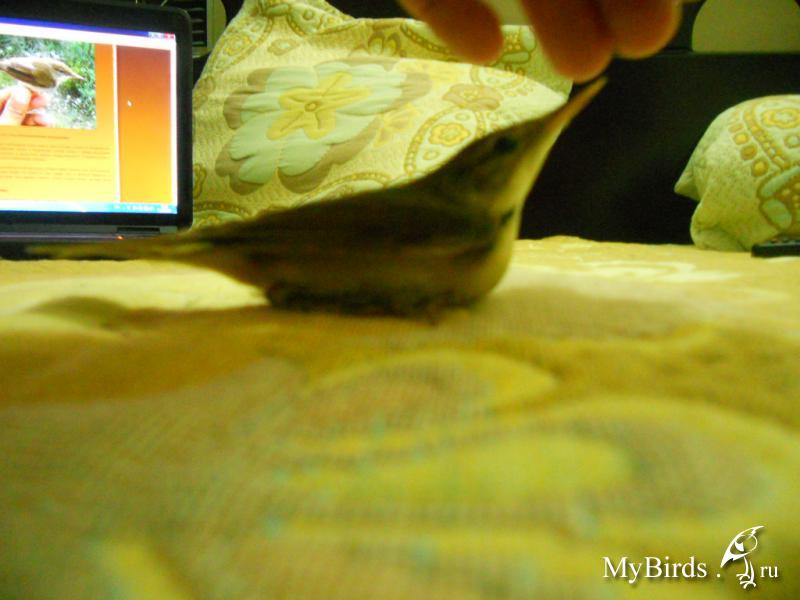 КРУТО Опубликовано 1 октября, 2014 #1 Опубликовано 1 октября, 2014 Вчера мною в тазу с водой на балконе была найдена эта птичка, она просто плавала в тазу, крылья чуток подмокли. Птица рук не боится, сидит на пальце, поедает с аппетитом мух, не охотно яйцо тертое. Зрачки очень хорошо видны, то есть наверное не птенец, летает по комнате очень хорошо. Завтра думаю выпускать, пока в клетке, сидит на жердочки, в основном спокойно, но бывает прыгает очень проворно. Кормлю прямо с рук. Вот фото.