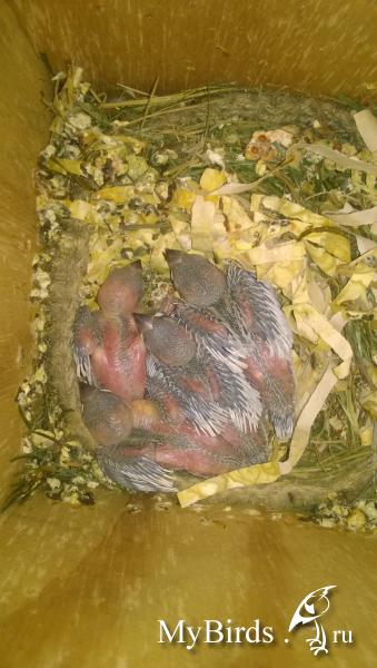 birdy4u Опубликовано 29 апреля, 2015 Автор #38 Опубликовано 29 апреля, 2015 Давно я здесь не была! Итак, рассказываю последние новости. У моих светлых рисовок уже 3 выводка! После третьего я принудительно отправила их на отдых. Хотела после второго, но они ещё до вылета птенца из второго выводка отложили яйца. Я пожалела будущих птенцов и оставила домик. На данный момент у пары моих японских амадин уже 5 яиц (вчера ещё было 4) плюс одно гульдовое. У темных рисовок сейчас 6 яиц, птенцы должны появиться со дня на день! Зебровых мне так и не удалось развести: 2 раза сажала на гнездо, пара откладывала яйца и высиживала птенцов, а после их вылупления они их выбрасывали из гнезда в первое же утро. Решила сделать им перерыв, но самка не унималась и снесла ещё 13 яиц подряд! Редкостная несушка мне попалась. Решила покапать ей курсом кальций в поилку, т.к. минеральную смесь она выгребает из кормушки и делает там гнездо. Хотя кормушка такая маленькая, что она туда ни живот, ни попу не может опустить. Сепия у неё висит, но боюсь, что кальция уходит больше, чем она его съедает. Попробую ещё раз повесить гнездо. Если не получится, буду менять самку. Уже думала, как бы её так пристроить, чтобы человек был толковый и не угробил птицу. Она же особенная - несушка!))Вот такие новости.А ещё я поучаствовала в выставке птиц 14 февраля. Я там была единственная с амадинами. Все остальные были с курами и голубями. Срубила приз в виде 7 пачек корма для птиц, ( т.к. была единственной, у кого были такие птицы на выставке)! Ну и плюс дипломы и кубок за участие. Про ужасную организацию говорить не буду: слишком много рассказывать. Начиная с того, что в помещении было холодно, и я уже собиралась уезжать (морозить птиц мне совсем не хотелось). Но нам выделили обогреватель, птичьи клетки я укутала в пледы, оставив только переднюю стенку открытой, и постоянно смотрела на термометр, чтобы не перегреть и не простудить малышей. Под конец выставки вообще оказалось, что в зале с другой стороны было открыто огромное окно! И это на выставке птиц! Решила, что если так будет в другой раз, я просто уеду и всё.Там же познакомилась с поставщиком корма Рио, договорилась покупать у него оптом без наценки. Вместе с ребятами с форума про амадин собрали заказ и теперь у моих птичек запас корма месяцев на 6 вперед!