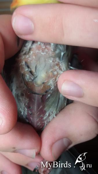 Zosia Опубликовано 14 декабря, 2014 #3 Опубликовано 14 декабря, 2014 1.Орнитоз "на глаз" не ставят. Если домашняя птица не контактировала с уличной и сельскохозяйственной- то орнитозу взяться неоткуда. Это раз.2.У птиц глубокий ощип по тому что я вижу. Давайте подробно- как давно у вас, как питается,что неразрешенного пил/ел- ПОДРОБНО. Пока по вашим словам непонятна проблема кроме того что она есть и серьезная. Можете сейчас дать ему сорбент,жидкий(смекта,алмагель) в клюв,по 0.5 мл каждый час, 4 раза. если вырвет- хорошо. Сорбент набирать в шприц и согревать в кружке с водой до 40 градусов перед выпаиванием. Греть постоянно. Читать темы по выкармливанию через катетер,закупиться нисттином,глюкозой 5%, физраствором. Еще раз птицу осмотреть и ощупать."Опухоль" на зобу может быть просто зобом, например переполненным продуктами дрожжевого брожения.Нисттин вам, 1/4 таблетки 500 000 ед, в сутки, в клюв, предварительно растолченный в пыль, на 10 дней.