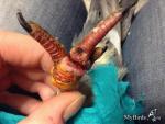 Delfin Опубликовано 18 февраля, 2015 #1 Опубликовано 18 февраля, 2015 14 февраля была в ветеринарке по эфтаназии своего птаха, там была малоимущая женщина кошатница -принесла найденного на мусорке голубя -у него на пальце была перетяжка, лапка была красной, НЕ черной, но перетяжка была до кости. Ветеринар убрал нитку\леску (не уточняла что имено, сами понимаете, не до того мне было....), замотал бинтом, взял 250р и отпустил домой. Т.к. птица у нее впервые, я ей пояснила что делать, дала ей свой номер - она живет оч далеко от меня и я физич не попадаю в тот район загорода. Сегодня звонит: "птице плохо, палец ПОЧЕРНЕЛ, почти не ест, я ничо не делала, врач сказал не трогать и повязку не снимать, а сегодня сняла - а там все черное, ЧТО ДЕЛАТЬ??" я ей сказала омывать теплым хлоргексом, примочки смеси №2 пару дней раз по 6 на день, потом подключать левомиколь (ируксола и химотрипсина у нас непродают). В клюв обезбаливащее (ибуфен, 2 капли с водой смешать на ноч) и травматин (0,2мл2 раза в день). Считаю что уже нужно антибиотик применять -она сказала дома есть глазные капли ципролет. Скажите что можно еще сделать и правильны ли дозировки?и если нужен антиб - расчитайте пожалуйста дозу его и нистатина для голубя (я сама дело имею только с мелкими птицами) вот фото как примерно выглядела лапа (фото взято из нэта) до того как врач убрал нитку: