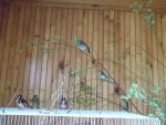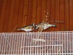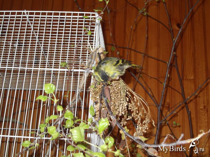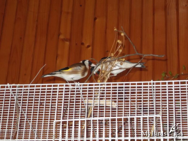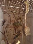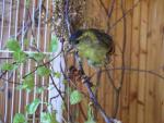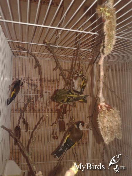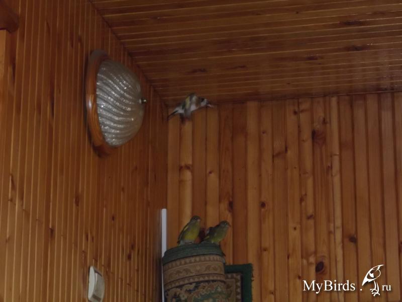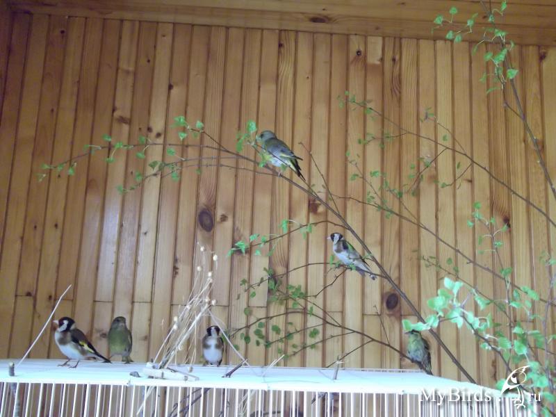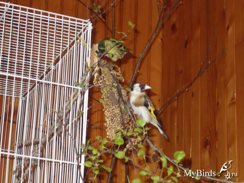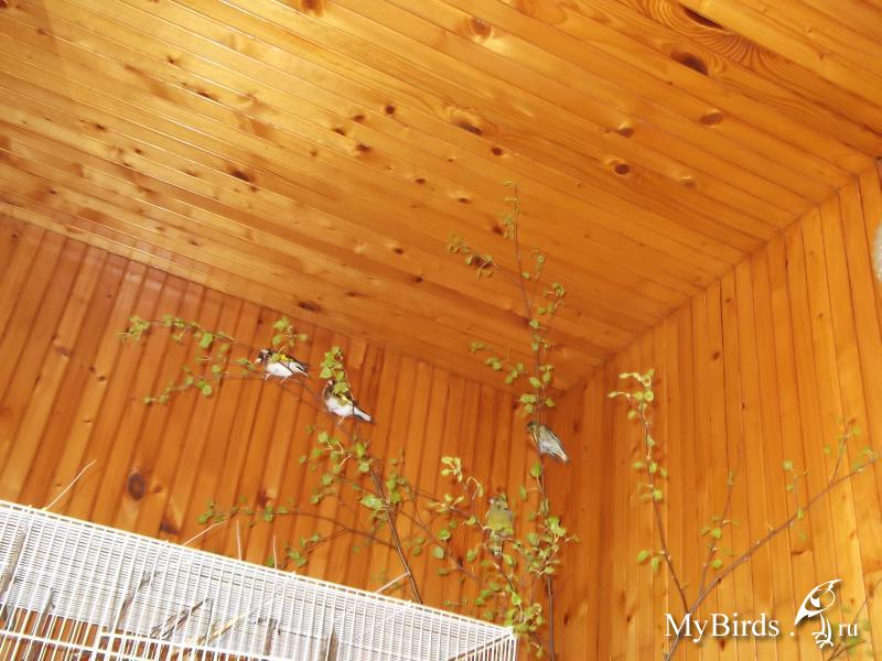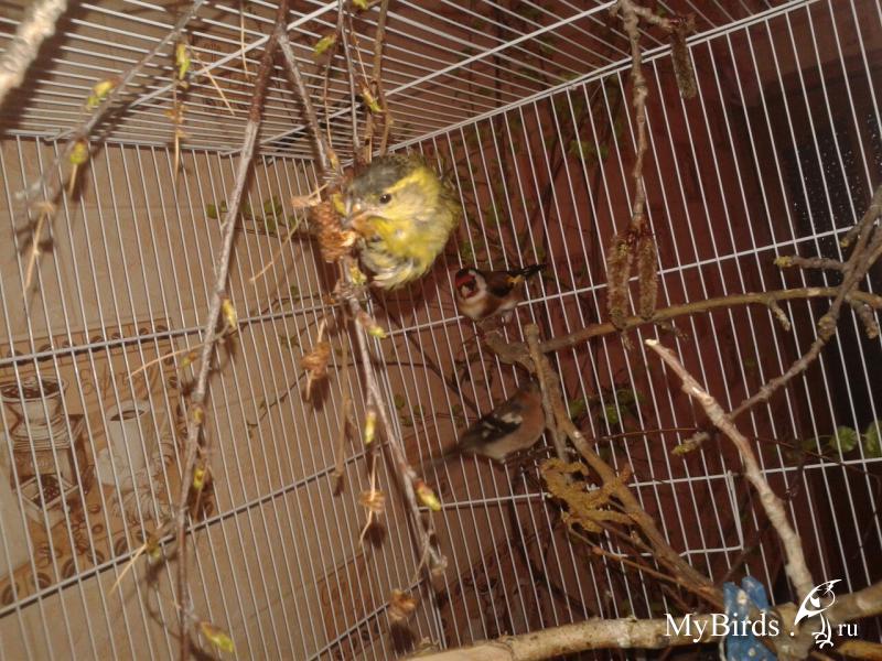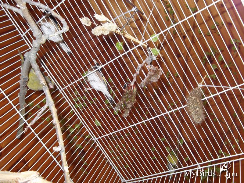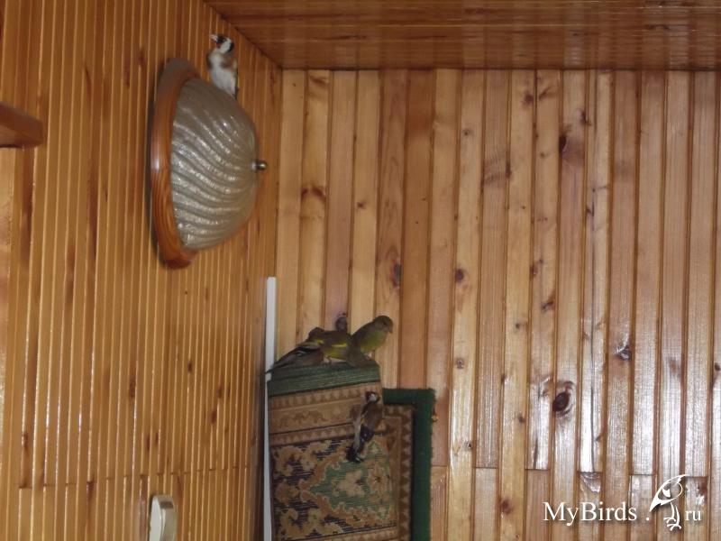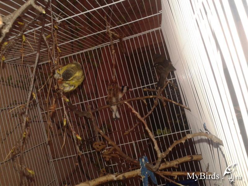 Лохматый птЫц Опубликовано 17 апреля, 2015 Автор #111 Опубликовано 17 апреля, 2015 у кого-то из толпы белый помет. Ох, мне уже страшно... Стараюсь уследить, у кого именно, но не получается. Зяблик отсажен, правда клетка маловата, но что нашли. Чувствует себя гораздо лучше. (хотя бы спит теперь на жердочке) Воот, мы благополучно переехали на лоджию. Пока отмывала и проветривала всё, заметила потом, что при закрытых окнах температура нуу на пару градусов ниже, чем в птичьей комнате. Самый главный плюс, как мне кажется, это что у них теперь нормальный световой режим. Пока я пересаживала зеленух, самые главные сорванцы успели сбежать) Пришлось потом и остальных выпустить. Кстати, инцидентов со стеклами не было, никто в них не бился. Странно.... Несчастную берёзу почти обглодали... Навешала колосков на потолок, так щеглы их пытались достать "из вне", ругались, ворчали, психовали, дрались с хомутиком) смешные ребята