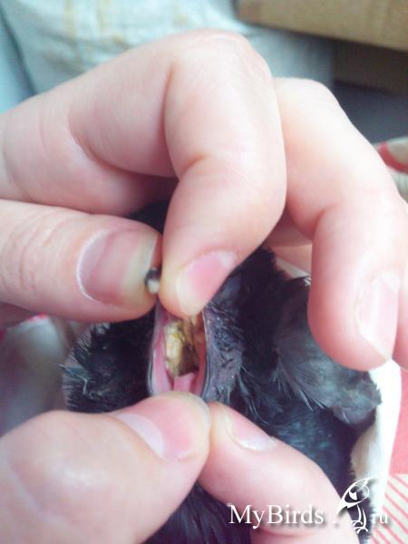 NikaNikova Опубликовано 28 мая, 2015 #14 Опубликовано 28 мая, 2015 Добрый день!Помогите, пожалуйста определиться с лечением!Подобран голубенок, на вид 15-20 дней, желтого пуха на головке уже нет, пищит. Очень истощен, лёгенький, за киль взяться можно(((Осмотрела горло - бело-кремового цвета внутри то ли налет, то ли стенки горла такого цвета.Пробовала ватной палочкой провести по налету - ничего не снялось, ватка стала кремового цвета.Кормила пшеничной кашей 2 раза с 16:00 до 21:00. Воды давала с каждым кормлением ок.2мл со шприца, т.к. мне казалось, что плохо проглатывает.Перед кашей давался нистатин 2 раза по 0,4мл. Потом 3-ий раз дала нистатин 0,2мл в 21:00. Не стала кормить в 3-ий раз, так как прощупала, что зоб полный - с предыдущей кашей. Как-будто каша не уходит.В 21:00 заметила, что клюв приоткрыт и как-бы слюна(что-то прозрачное) посередине приоткрытого клюва.Плюс фоспренил 0,2мл 1 раз сегодня.Помет с самого начала желто-белый с черным калом(червячок). К вечеру практически желтый с калом. Получается, что "моча" у голубенка изначально желтого цвета, с белыми примесями.Вечером услышала, что слабо похрипывает-похрюкивает изредка.Прочитала много тем, предположила, что у птички кандидоз или трихомоноз. Сегодня давала то, что было у меня дома. Помогите, пожалуйста, советом, что за болезнь и как лечить?