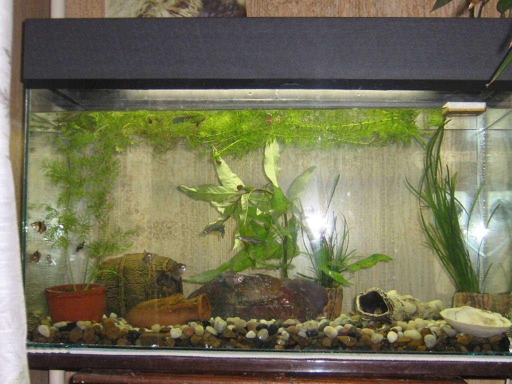 Juliett Опубликовано 17 мая, 2007 #270 Опубликовано 17 мая, 2007 Так, у нас на работе конец света при отсутствии электричества, я тут напросилась, но могут в любой момент погнать.Значит, у меня аква на 80 л. В ней живут три здоровых сома и два гурами, которые практически постоянно живут в бочке. И мелочь: 3 тернеции, 2 суматранских барби и 2 зеленых, 2 данио, 2 петуха. А , еще 3 гиринохейлуса. Я предполагаю добавить еще пару данио и пару скалярок (очень мне нравится, как они гуляют).