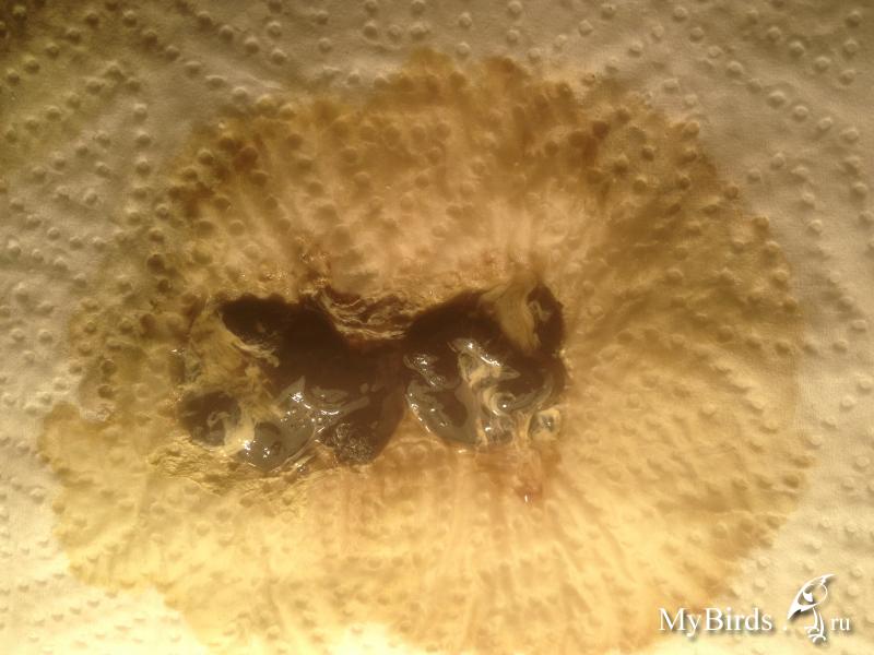 Genshir Опубликовано 10 ноября, 2015 Автор #103 Опубликовано 10 ноября, 2015 (изменено) gulgul Спасибо огромное за советы. Из хороших новостей - Голубь 9 еще жив. Теперь о плохом.Утром/днем кормил размоченной гречкой. В зобе осталась процентов 50.Сейчас размолол блендером вместе с водой в очень жидкую кашу, Влил ч/з зонд около 10 мл.Жду, как ЖКТ отреагирует на жидкую. В помете катастрофически много зеленой воды.Дал третью дозу за день орнидазола. Чуть позже, если зоб чуть-чуть освободится дам еще нистатин и флуконазол. Фото помета совсем не радует. Изменено 10 ноября, 2015 пользователем Genshir