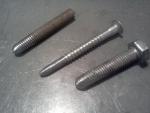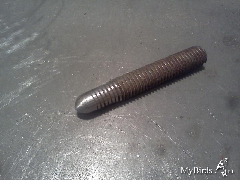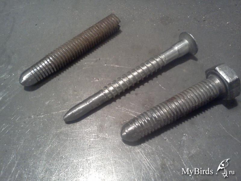 3. Нужен был инструмент для установки люверсов. К сожалению не нашел, хотя морально уже готов был купить. Но так как мне люверсы ставить не на птице, то сделал инструмент из подручного болта (фото 1). Обточил его на точиле (фото 2). Ну и на всякий случай сделал еще 2 штуки - про запас. Заодно потренировался.