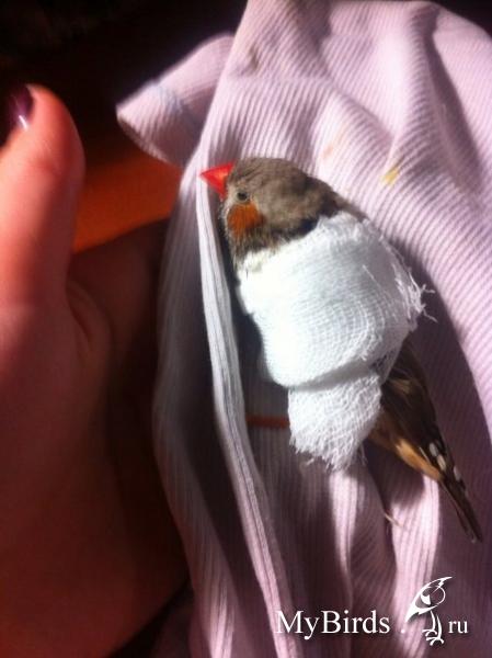 nympha_ju Опубликовано 23 марта, 2016 #3 Опубликовано 23 марта, 2016 зебровая амадина. самец 6 мес. парочка, никогда из клетки не выходят, боятся.Кормила и, видимо, не до конца закрыла клетку.Гуляли кареллы, я вышла, слышу крик, когда забежала, то кареллы мечутся по всей комнате, а амадина на полу, вторая в клетке, взъерошена. Поймала его, крыло в крови, руки в крови. Кисть крыла болтается. на бинт вылили ампулу этамзилата и приложила к крылу. Жду Зосю на связь. В вет клинику звонила, сказали, что, в принципе реально собрать крыло, но оно будет очень хрупкое и ломкое, орнитолог будет только в пятницу и запись в 22:30. Птица дергается, кусается, пока фото сделать не могу, я прижала его в ладошке, чтобы не дергал крылом, т. к. один раз вырвался, пытается улететь...