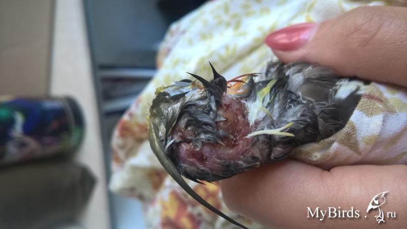 Stasyast Опубликовано 2 мая, 2016 Автор #65 Опубликовано 2 мая, 2016 Всем доброго времени суток. С праздниками Вас.Мой Гендальф (не путать с гембелем) потихоньку набирает вес. Кушает пророщенный или запаренный овес, но очень мало и то только когда я ставлю кормушку перед собой на стол и сижу перед ним (наверное у ребенка научился). Кормушка может целый день в клетке простоять, а он вниз и не спуститься. По-этому я все равно 4 раза в день кормлю со шприца смесью с лекарствами. Помет жидкий, но уже внешне отличается от того, что вливала, а то я не могла отличить - то ли каша капнула, то ли птиц.Ребята, но я без приключений не могу. Сегодня решила немного отмыть поросенка от каши - завернула в полотенце, чтобы всего не мочить и вперед ватным спонжиком с теплой водой. ТО что я увидела - не порадовало и прикрепляю фото.Нужен совет стаи, как вы думаете, что это может быть. К слову сказать это так страшно выглядит только в мокром виде, когда птиц сухой - почти не заметно, и это само по себе - сухое.Нужно ли с этим что-то делать и есть ли шанс, что зарастет.В общем мне везет на лысых птиц. Я поздней осенью нашла на улице абсолютно лысую канарейку, да еще и с гематомой - видать воробьи заклевали. Теперь такой красавчик (или красавица), что один из заводчиков канареек все ни как успокоиться не может, зачем мне такая птичка.В общем по простому - это не про меня. Буду рада услышать ваше мнение.
