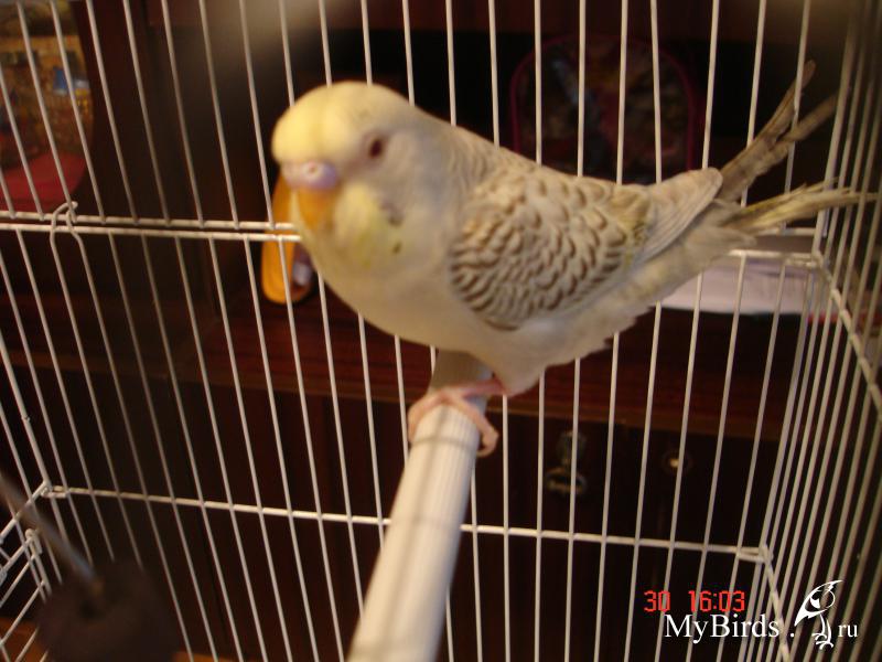 Noksh Опубликовано 5 ноября, 2011 #6508 Опубликовано 5 ноября, 2011 (изменено) Добрый вечер, Уважаемые!Неделю назад купил попугайку, чему очень рад! Надеюсь попугайчик тоже доволен. Хулиганит, днем покрикивает, а вечером сокойно у кормушки балдеет Еще давно, пару лет назад, зарегистрировавшись на Вашем сайте я решил выложить фотки своего попугайчика для определения пола, если вздумаю завести птичку. Спустя два года решился Хватит, наверное, лирики. Это у меня Фёдор или Федора? У птички на лобике выпадают перышки и появляются столбики с новыми перышками. Это попик взрослеет? Т.е. ему 3-4 месяца? Очень надеюсь, что приложенных фоток хватит, так как вблизи это максимум качество, а чтобы сделать поближе придется мучать птичку, т.е. брать насильственно в руки. А у нас с Федором дружественные отношения!Загадка: вроде и беленький, а пятнышки черные, усы синие с одной стороны, а с другой усы белые Вопрос - какого цвета попугайчик? Изменено 5 ноября, 2011 пользователем Noksh