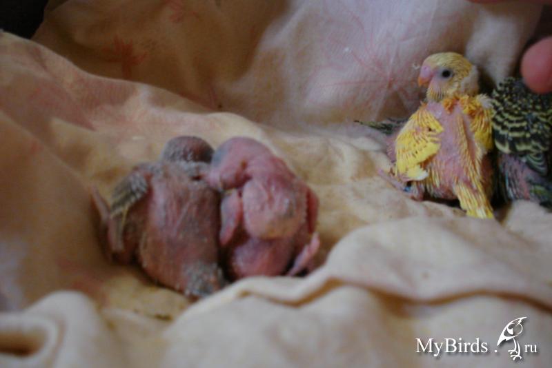 NatalyNK Опубликовано 26 марта, 2017 Автор #65 Опубликовано 26 марта, 2017 За прошедшее время малыши подросли.Рома научился пищать, как птенцы) Хором))Раз спросил у мужа: "Что будет, если поменяться? Я что, не прав, чтоли?""Ромочка - диктофончик"После замены опилок в гнезде, Пружинька начала их заново выкидывать... и принимать ухаживания Ромочки. Видимо, подросшие птенцы стали ей в тягость, и она стала проявлять агрессию. В виду чего домик убрали. Птенцов высадили на пол клетки, накинули ткань. Пружине сделали "перезагрузку" отсаживанием на пол дня. Ромочка, отстраненный ею ранее от выкармливания, попав к пищащей ораве сразу потерялся. То есть чуток покормил и далее был занят только одной идеей - как сбежать из клетки. Вернувшаяся мамаша быстренько наполнила всем зобики так, что они раздулись.Старшие кушают сами, подкармливают младших. Трое старших уже летают. А вот фото подрастающих деток:Первый и третий: Второй: 1,2,3: У желтого проявляется чешская осанка Второй похож на египтянина: такая же прическа и милые бусики в 2 яруса Первый пытается изобразить веточку Тут хорошо виден переход цвета из желтого на голове в синий в хвосте. И контрастный желтый хвостика.