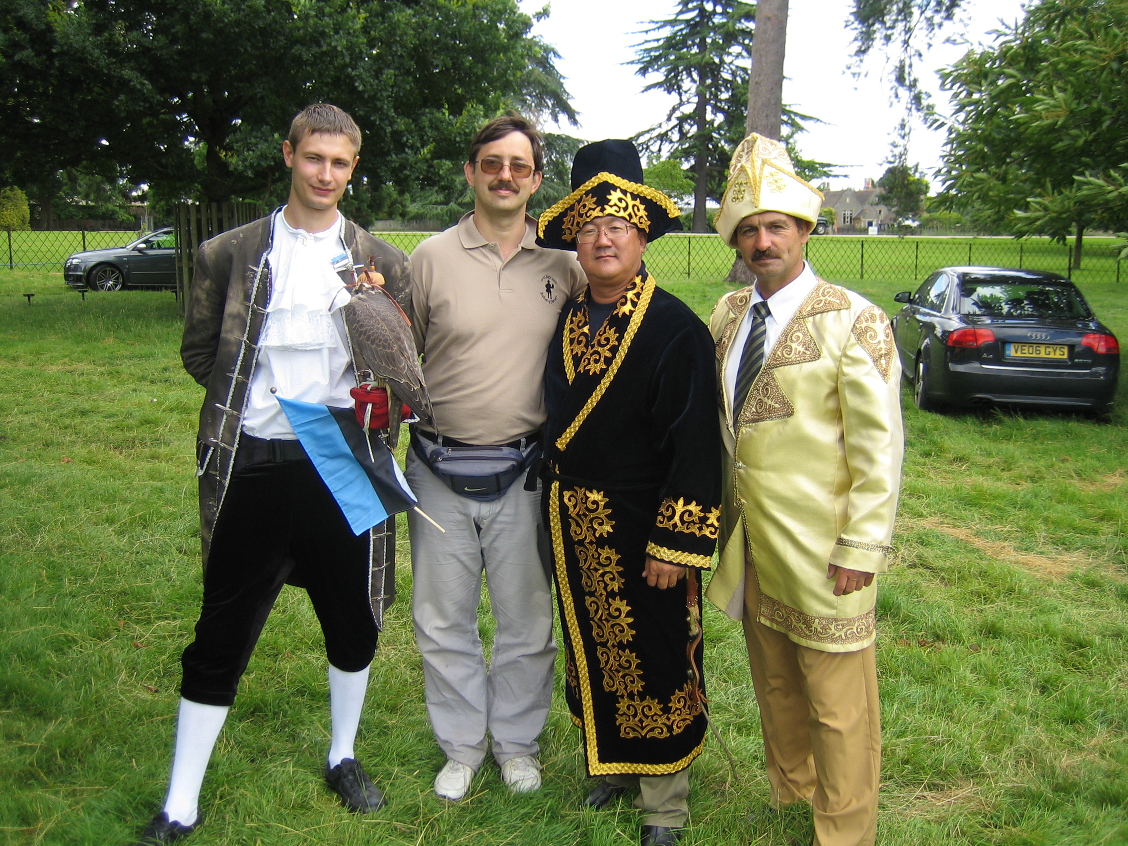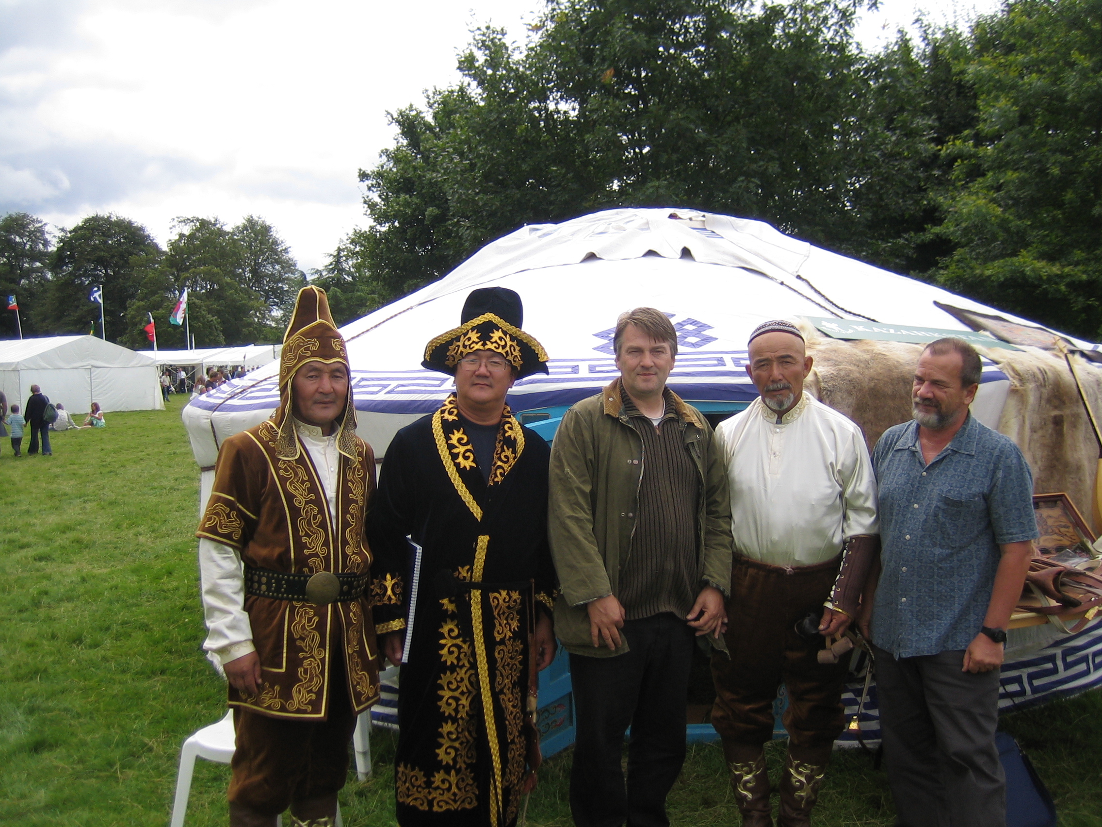 Баха Опубликовано 26 июля, 2007 #69 Опубликовано 26 июля, 2007 (изменено) Да его дочка в треуголке,т.е. Хибелера.Здесь на фото Дима из Эстонии-Молния,Женя Шергалин,я,Владимир Земблевский-Исполнительный директор Федерации Беркутчи Казахстана из Астаны. Исабеков Мухамед директор дома-музея Беркутчи "Жеты Казына" в Алматинской области и сам беркутчи и заводчик рабочих тазы,я, немец из Германии забыл фамилию-друг Ральфа Пфеффера, следующий Абилхак Турлыбаев-знаменитый и признаный во всем мире беркутчи и кусбеги,Ральф Пфеффер-ну о нем можно и не распространяться,кстати мой земляк-жил когда-то в Джамбуле,сейчас в Германии.Что о фестивале,так для меня супер.Погода стояла высшая,иногда дождичек покапает и все опять солнце многие люди даже загорели под английским солнышком,это вам не сегодняшние дни когда Англию заливает.Мы,т.е.казахстанцы,туркмены и кыргызы жили одним лагерем в 4-х юртах,сами себе готовили вместе из одного котла харчевали,сидели за одним столом. Днем занимались встречей гостей и сами ходили по стендам разных стран проходили смотры и парады наций, вечером у многих палаток горел костер,все ходили неофициально друг к другу в гости пили пиво и все что нальют,пели песни под гитары, и др. национальные инструменты____________149_1_.avi,по утрам ходили в горячий душ опохмелялись и вспоминали,что было вечером?Руна посмотри на фотках есть всякие аксессуары,перчатки и т.д.Кстати кому нуно Маршаловское и др. фирм оборудование пожалуйста, пришлю адреса они высылают, хотя самое дешевое китайское оборудование: ресейвер и в комплекте 2 трансмиттера стоит около 400 долларов,тоже могут прислать.Сокольник и фермер из ЮАРНа следующий день в газете вышло это фото и корреспондент этой газеты принесла её намЗаметьте разницу между казахами,киргизами,китайцами,японцами, отличается только Ник ФоксА в казахстанской юртезвучала музыка известная всем, исполненная на домбре,которую я держу в руках____.mp3 Фото кыргыза Рыскулбека с камчой(плеткой) из рога горного козла в форме беркутаАксакал(А.Турлыбаев) устал...Девушка английская-наряд туркменский,но очень красиво ____________245_1_.avi Изменено 26 июля, 2007 пользователем Баха