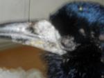 выкупала птица брызгалкой, из глаза вытащила несколько кусков плотного белого гноя(когда-то было такое у гуля), закапала софрадексом- глаз открыт, но птица слепая. была кровь на перьях головы, но так много перьев, что не могу просмотреть кожу. Птица попала ко мне случайно, отдала женщина с форума о животных, сказала, что подобрала ее ,недвижимо сидящей в течении дня, вечером, чтобы не замерзла. У меня живут грачи, слабое представление о грачах имею. Мне кажется, что это старенькая грача, у нее такие плотные наросты на неоперенной части клюва, похожие на корабельные ракушки. Орнитологов в городе нет. Лечим здесь.дополнительно фотки выложу позже, жду советов, всем спасибо заранее