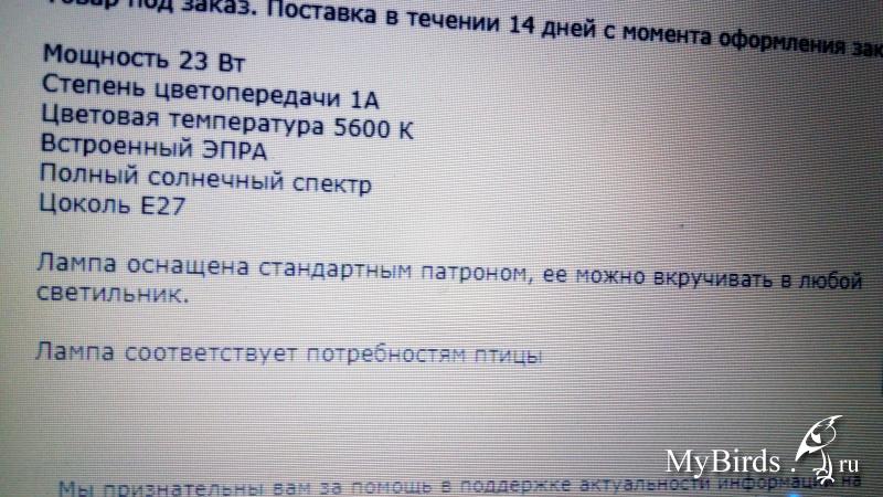 Лариса 59 Опубликовано 3 октября, 2017 #171 Опубликовано 3 октября, 2017 Litera, здравствуйте. Прежде чем покупать коврик для рептилий - почитайте - как его использовать. Обычно такие коврики крепятся под дно террариума (снаружи). Т.е. на стекло! Да еще и чтоб зазор был для воздуха между стеклом дна и ковриком. Для коробок он никак не подходит! Я покупала такой на пробу и на следующий день сдала в магазин. Надо было инструкцию сначала прочитать, а потом покупать. Хорошо, что с чеком и назад взяли. И мощность была очень маленькая! Лучше всего - обыкновенные термоковрики для сушки обуви, для животных и т.п. Пользуюсь таким второй сезон. Удобно и безопасно. По лампам - обычно для птиц советуют птичьи лампы типа Аркадия, Филипс. Лампы для рептилий не подходят птицам. Спектр не тот. Вот что советуют по цифиркам -Для птиц лучший вариант 5500К 12 % УФ-A и 2.4 % УФ-B.
