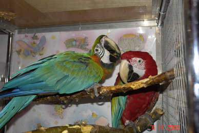 Изначально самку(Лайму) посадили к нему,но эта дамочка его просто задолбила.Он её боялся.Так что если брать мне самку,то с условием,что в крайнем случае её можно будет вернуть.А при всём моём желании завести нормального сине-желтого ару(они больше всех мне нравятся!) не могу из-за "квартирного" вопроса.Можно,конечно,стеснить кого-либо,но не хочется.