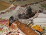 Воронку решила ловить, т.к. думать о ней постоянно стало невыносимо. Поймали. Думала, что станет легче – нет еще хуже. Мне кажется (уверена) что она больна оспой. (Начиталась в интерете) . Со вчерашнего дня сидит у меня на балконе. Еду, которую ей днем поставила, она не съела до утра. Думаю, что и с палки не слезала. Утром дала свежей - немного поклевала яйцо и опять на насест (ручка от швабры). На свободе она больше ела. Вокруг глаз у нее белые чешуйки (корочки), чешет глаз о палку и иногда дышит с присвистом и подкашливает и на двух пальчиках припухлости. Правда, тщательно я ее не успела осмотреть (все происходило очень быстро, отпрашивалась с работы) когда пришла было уже темно. С фото проблематично – если крупным планом то выходит не резко. Вот такие дела. Сижу в трансе…. Что делать? Врача искать буду, но не уверена в наличии у нас спецов по птицам.