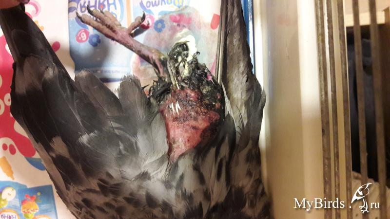 СашаП Опубликовано 23 октября, 2017 Автор #7 Опубликовано 23 октября, 2017 (изменено) поскольку хвост так отрывает собакаа слюна собак и кошек способна вызвать заражение крови СРОЧНО https://www.mybirds.ru/forums/index.php?showtopic=64870антибиотики в обычной человеческой аптекеи из тех что указанны в списке так как не все действуют на пастареллук антибиотика ОБЯЗАТЕЛЬНО купить нистатини постраться купить растаропшу или карсил сделайте пожалуйста фото всех ран ВЫЖИТЬ и Здоровья Вашему голубю! это насчёт спасения жизни насчёт лапок осмотреть ВНИМАНИЕ при осмотре голову держать ВЫШЕ зоба чтобы не захлебнулся его содержимым есть ли у Вас возможность сделать рентген в двух проекциях (сверху и сбоку) у ветеринара?за три часа до рентгена не кормить чтобы случайно не захлебнулся содержимым зоба при переворачивании осмотреть спину под перьями - нет ли на пояснице синякаобычно в этом случае ноги отнимаются на несколько недель пока не спадёт отёк\ так же нужно ОБЯЗАТЕЛЬНО фото помёта на белой бумаге Сфотографировала как могла. Боюсь трогать лишний раз. Почему то не верится что это была кошка/собака. У нас это большая редкость на улицах т.к. город от них чистят. Завтра займусь лекарствами. Изменено 23 октября, 2017 пользователем СашаП