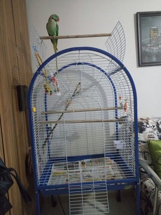 black_butterfly Опубликовано 26 января, 2018 Автор #13 Опубликовано 26 января, 2018 @Irinkaa спасибо за советы! Вот наша клетка, досталась вместе с попугаем.)) Жердь, которая стоит вверху, как распорка, снимается и ставится внутри. Он как раз ее и грызет, когда сидит наверху, вчера даже она упала... Форма, конечно, не самая удачная, когда открываешь верх, то все подвешенные игрухи поднимаются...
