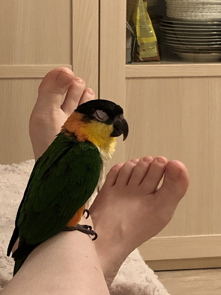 Мария_К Опубликовано 20 февраля, 2019 Автор #337 Опубликовано 20 февраля, 2019 @Darya мне кажется, это особенность каиков, они все такие попрыгуны)) кошечка у нас уже старенькая, 14 лет. Она боится Нику, хотя и следит за ним, но стоит ему направиться в ее сторону-чешет от него скорее. Далеко не убегает, отойдёт и сядет, смотрит бежит или нет птиц за ней)) А он старается укусить ее, за лапы, хвост, если не получается, то хотяб за мех на пузе, а потом шерсть с себя стряхивает ходит. А вот за волнистыми она более пристально следит, охотится.