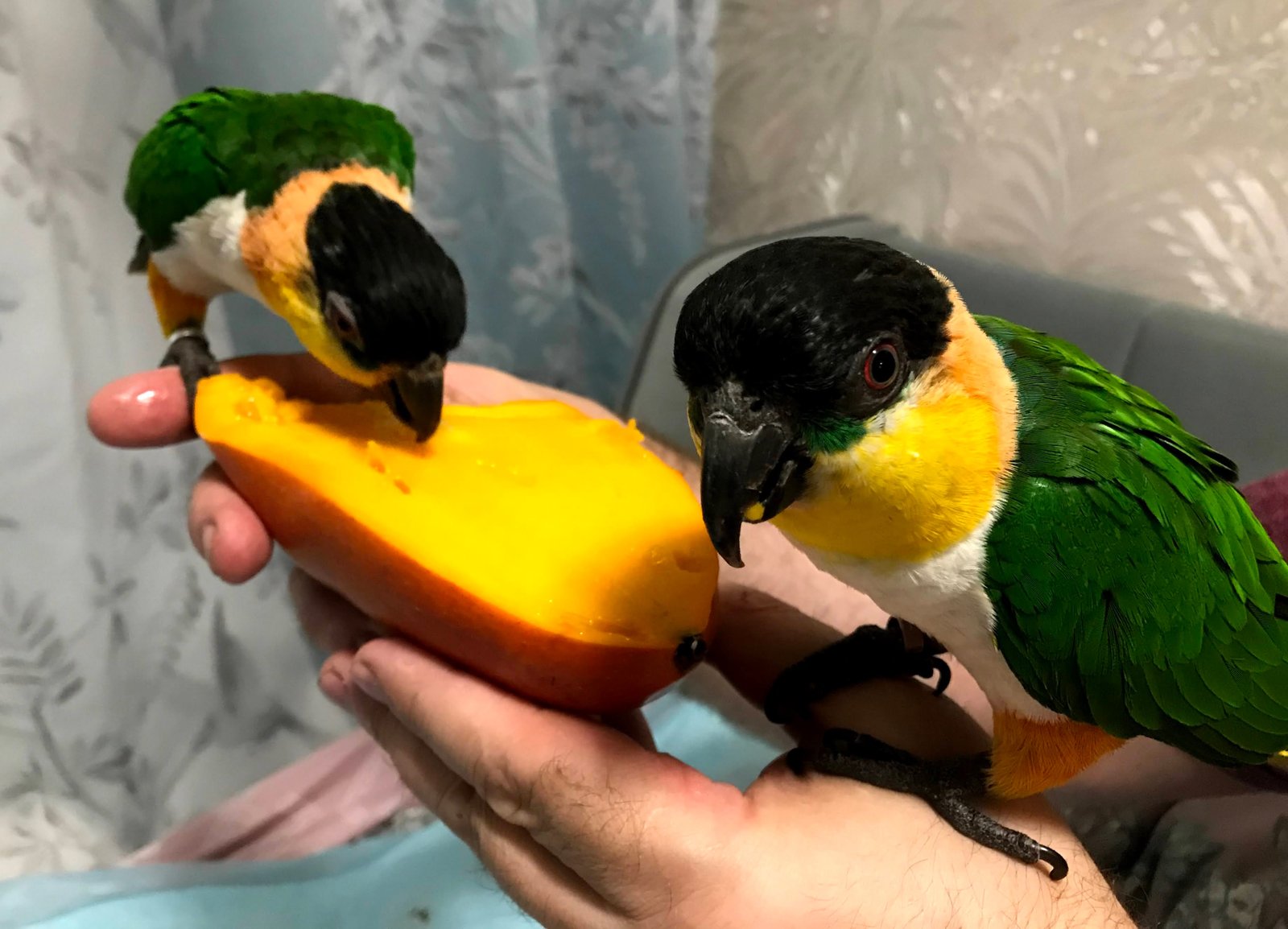 NAJADE Опубликовано 30 мая, 2021 Автор #608 Опубликовано 30 мая, 2021 Открываем летний фруктовый сезон с очередной дегустацией. В этот раз, это какой-то огромнейший и, самое главное, полностью вызревший манго из Таиланда. Я таких раньше никогда не видел и не смог отказать себе и пушистикам в такой вкусноте. Фрукт пошел на ура! Слетелись «коршуны» и начали вдвоем жадно запускать клювы в сочную мякоть. Объелись, перепачкались сами и всё вокруг, как обычно, посидели какое-то время на присаде, пристально наблюдая за оставшимися на столе кусочками манго. Видно было, что птицы уже наелись, но фрукт их, по-прежнему, манил. Каики снова и снова летели к столу, возвращаясь к своему лакомству. 3