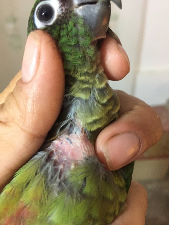Музя Опубликовано 8 июня, 2018 #1 Опубликовано 8 июня, 2018 Здравствуйте, прощу помочь. У меня пара пиррур, у ных вивелис птенцы в начале апреля. Кормили родители до одного месяца. А через месяц для того чтобы сделать их ручными я начела искуственное кормления со шприца. Они кушали хорошо и очень скоро стали ручными. Примерно две недели назад я заметила гематому у троих и пяти птенцов в раене зоба. По видимому они покусали друг друга или поругалис когда играли. Вчера заметила что у одного из них испачканы перья в раене зоба. Сегодня тоже это заметила. Осмотрела птенца. У него корка отошла и оброзовалас дыра в зобе примерно пол сантиметров в диаметре. Птенец как всегда активный и кушает. Они недавно начали кушат понемногу сами. Сейчас я им даю зерновой корм, различные фрукты и овоши, ветки, вареную кукурузу, пророщенную пшеницу и мешанки из разных круп с яйцом морковью и порошком яичной скорлупы. Они очень любят полетат и погулят. Отпускаю их два три раза в ден по пол чеса полетат по комнате. Можно ли вылечить птенца максимально доступным способом из доступных средств дома. Сейчас я подстригла перья в раене дыры, почистила от остатков пищи и обработала перекисью. На фото видно корку котороя не до конца отвалилась. С втутренной стороны она покрита пищей что ел птенец. Надеюсь на помощь. Спасибо.