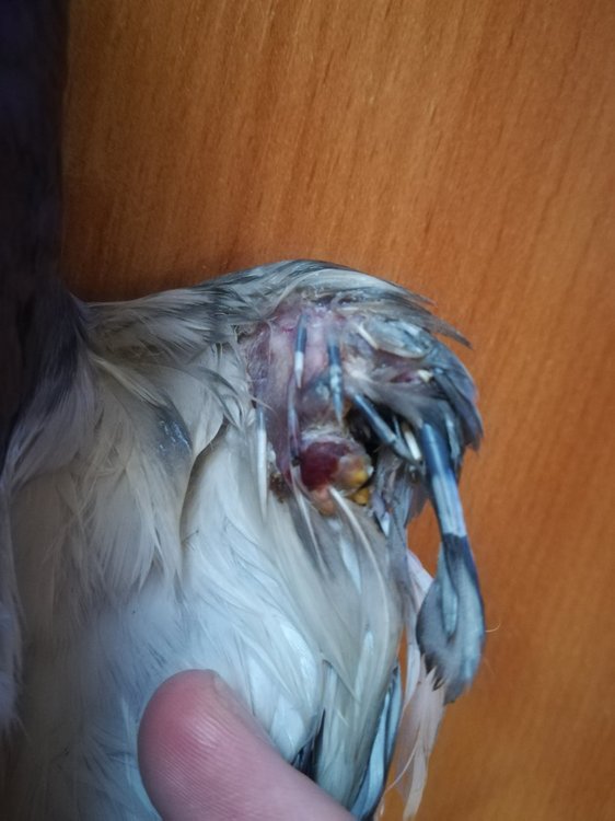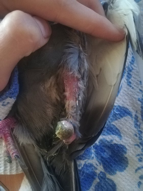 Kina-Li Опубликовано 10 июня, 2018 Автор #12 Опубликовано 10 июня, 2018 Ранее неточную информацию дала 18 часов назад, Kina-Li написал: Ест, пьет, подпрыгивает, бежит, не подлетывая. Прям ощущение что оторвано крыло там, вроде нет проблем, только кровь засохшая(( Прощупала крыло, Есть плечо, предплечье, кисти не хватает будто он подлетает на небольшую высоту и падает. насчет крыла. Желтое - это небольшие наросты сверху. Гной при надавливании не идет,они твердые. На фото немного отсвечивает, черное пятнышко там только в области выделенной красным,оно как бы под кожей. остальное нормальная розовая кожа. А большое темно-красное пятно видимо свежая рана зажила. открытых ранок нет нигде.