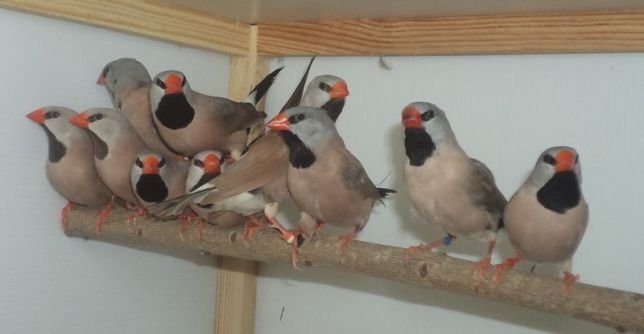 Штурман Опубликовано 11 июня, 2018 #1 Опубликовано 11 июня, 2018 (изменено) Решил поставить дома вольер и насадить туда разных самцов, вроде как чтобы не размножались и у заводчиков они все сидят вместе, а самки отдельно. Сначала купил красномаскового тростникового астрильда и гибрида травяной острохвостой и травяной масковой амадин. Поскольку вольера пока нет, посадил их в клетку, где они в общем нормально просидели 2-3 недели. Вчера получил из другого города самцов желтомаскового тростникового астрильда, травяной острохвостой амадины и троих японских амадин. Этих посадил во вторую клетку рядом с первой, все вроде познакомились с большим интересом. Так и стал наблюдать. Песня отличается у всех, у каждого есть что-то свое. Но все стадо получилось серо-коричневое. Птицы все от одного заводчика, поэтому решил не тянуть и соединить астрильдов и травяных в одной и японцев в другой. Идея: посадить первую четверку в вольер, а японцев попробовать приручить к рукам, один совсем молодой, только с гнезда. Ну, вроде, план годный... и тут травяные стали враждовать! Сколько смотрел фото, как они все дружно сидят на одной жердочке, а тут один на один мой старенький, окрепший на хорошем корме стал по всей клетке гонять новичка. Пришлось его отлавливать. Теперь вот не знаю, как и быть. Привыкнут ли, как думаете? Изменено 11 июня, 2018 пользователем Штурман