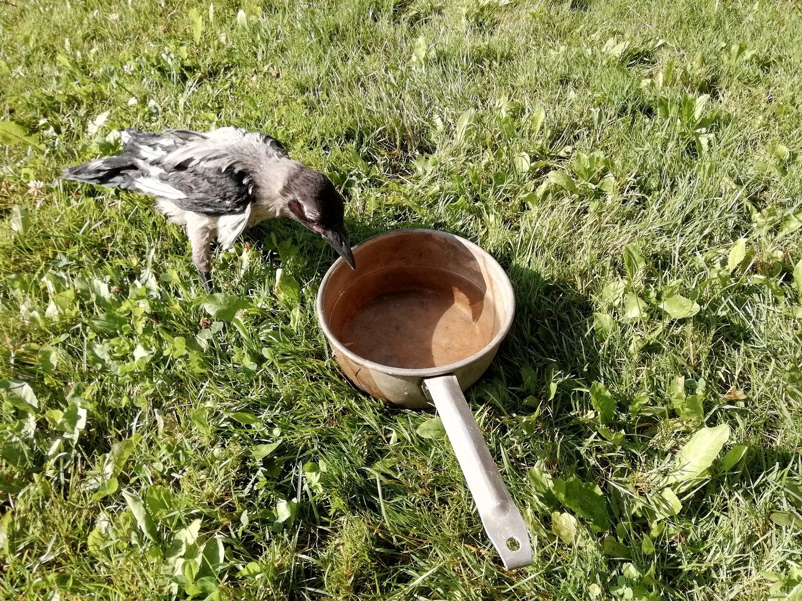 Ой забыл! Сегодня вороненок с вольерки долетел/домахал до тумбочки! Целых полтора метра!!!
