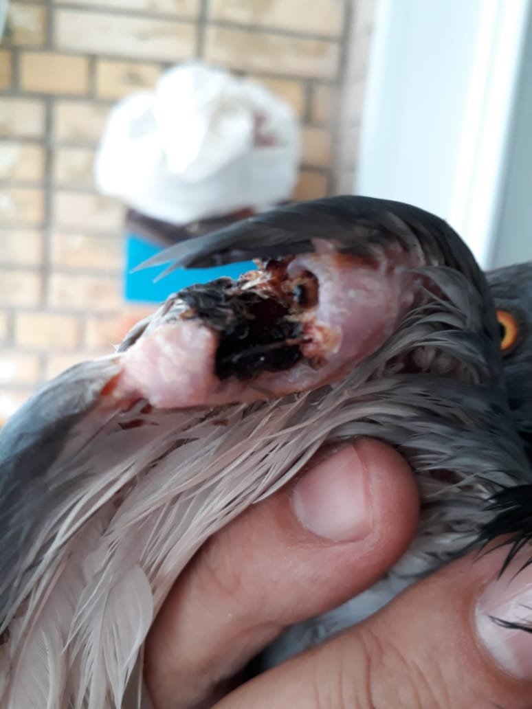 Razvodovsky Опубликовано 9 июля, 2018 #1 Опубликовано 9 июля, 2018 Вчера днём подобрали молодого голубя в подъезде. Убегал от нас не давался в руки, но как поймали увидели, что на локте (или как эта часть крыла называется) дырка, оттуда торчит, то ли кость, то ли перо с засохшей кровью. Посадили на балкон, налили воды, пшена и семечек и не знаем что делать. Он прячется в закутке на балконе. Подскажите как лечить, какие анализу сдавать и есть ли шансы. Готовы вылечить или оставить его у себя в случае нелетабельности.