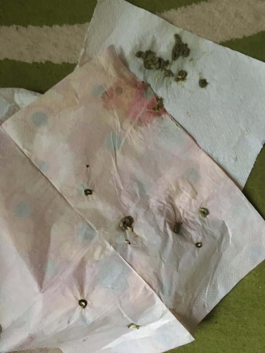 Юлька Юрьевна Опубликовано 15 августа, 2018 Автор #157 Опубликовано 15 августа, 2018 Доброе утро! Вот помёт за ночь. Зоб опять не пустой, дала вазелиновое масло. Кормить не стала, дала нистатин, через 40 минут антибиотик и карсил.