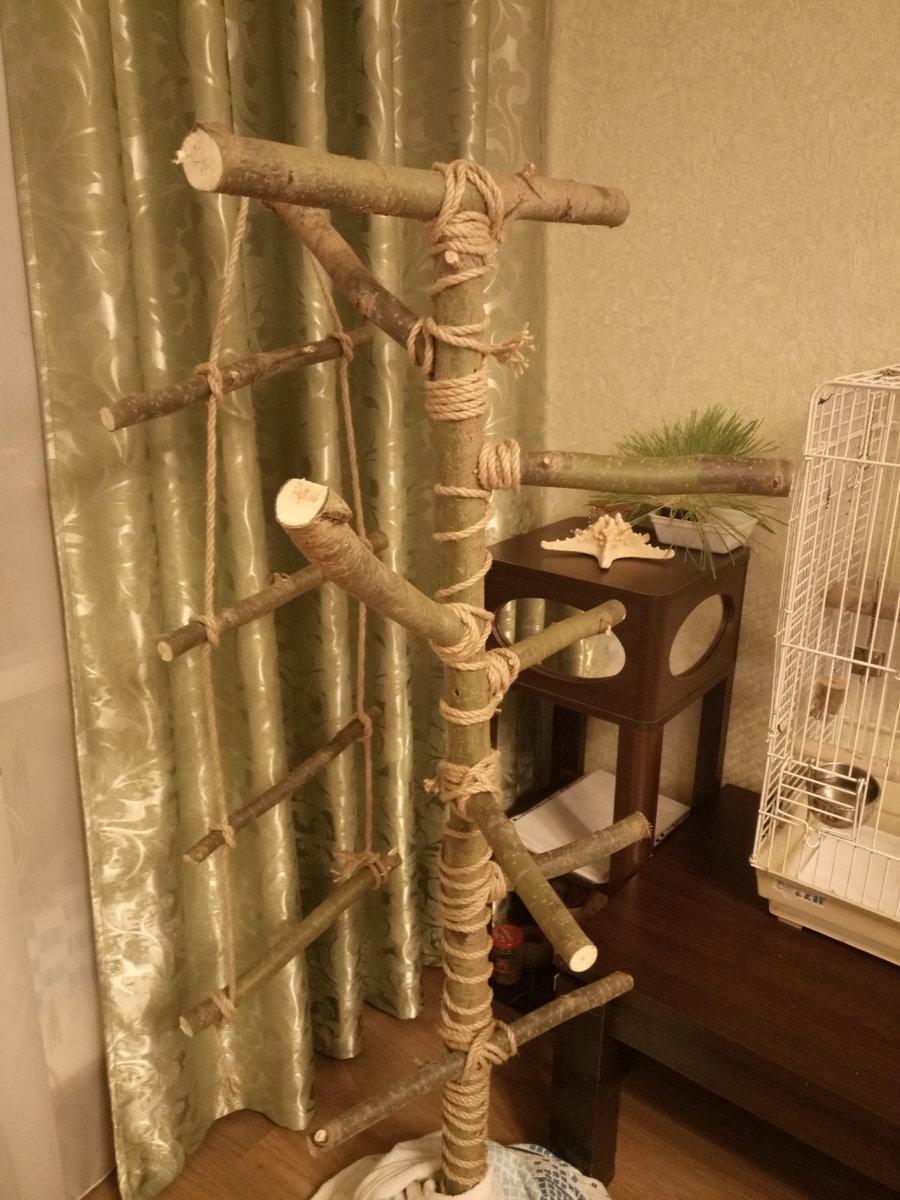 Владимир Владимирович Опубликовано 4 октября, 2018 #60 Опубликовано 4 октября, 2018 13 часов назад, АнжеликаD сказал: Нужно теперь веревок накупить, хочу ещё лесенку ему сделать, на стенд повешу...вобщем куча идей ! Я вот тоже лесенку сделал из толстой веревки и поперечных палочек, так мой Жорочка попробовал грызть веревку и плюнул на нее, за то палочки перекладины сантиметра 2 в диаметре пришлись ему по вкусу. уже третью догрызает. Ха ха! глянул на клетку посчитать сколько палок сгрызено и обнаружил, что одна из веревок тоже уже перегрызена! Кстати, все что нужно прикрепить или скрепить или связать я делаю с помощью проволоки. На проволоку он ноль эмоций, а вот все что ей скреплено подвергается полной экзекуции.