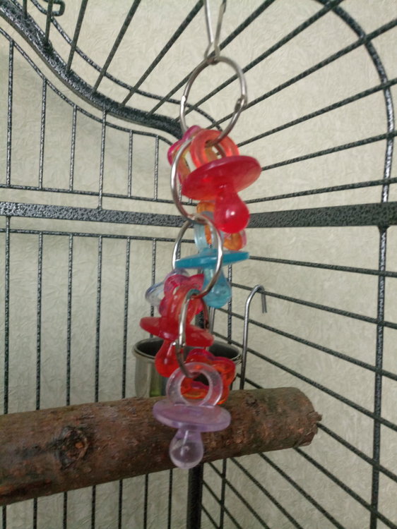 АнжеликаD Опубликовано 2 декабря, 2018 Автор #103 Опубликовано 2 декабря, 2018 Сегодня, наконец то, искупала Ромку! Пыталась вчера, по совету @Дафния искупать его на прогулке...ничего не вышло, пока мы в комнате, Ромик не выходит из клетки. Только уйдем, выходит, но стоит мне вернуться в комнату, тут же бежит обратно в клетку ! Сегодня решила купать в клетке, первый раз я увидела что Ромику это действительно понравилось ! Он топорщил пёрышки и даже немного приподнимал крылышки, такая лапочка ! Сейчас сидит, надулся как шарик и скрипит клювом! Теперь только так буду его купать, ну и пытаться это сделать на прогулке! Спасибо Дафнии за ее советы ! Ещё я сделала для Ромочки глиняные колечки. Пока Рома приглядывается к новому предмету, но надеюсь скоро попробует !