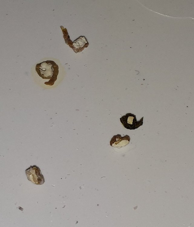Lesy-lisa Опубликовано 24 августа, 2018 Автор #3 Опубликовано 24 августа, 2018 Байтрил давали одна пипетка раствора 0,1мл на 100мл воды утром и вечером, наверное дней пять, пока не испортился помет, и сам попугай вообще перестал давать себя поить. Оранжевой была каловая часть два-три дня. Цвет не яркий конечно, такой приглушенный. Морковку в эти не давали. Сейчас помет стал таким, как и прежде Только иногда, ни с того не с чего, вместо каловой массы просто жидкость, в центре которой белый кружочек. Было всего пару раз, помет снова стал после этого нормальным. Сейчас один день не давали карсил, и помет изменился. За день он меняет цвет несколько раз, хотя корм не меняется. Еще прикрепляю последний свежий анализ - делали 5 дней назад.
