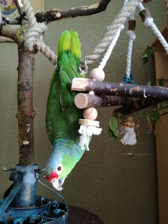 И еще я заметила, что у него переросший клюв. Пожалуйста, давайте ему веточки , палочки натуральные. Чтобы грыз и стачивал его.. Это очень важно, чтобы птица была занята когда Вы не можете с ним общаться или Вас нет дома.