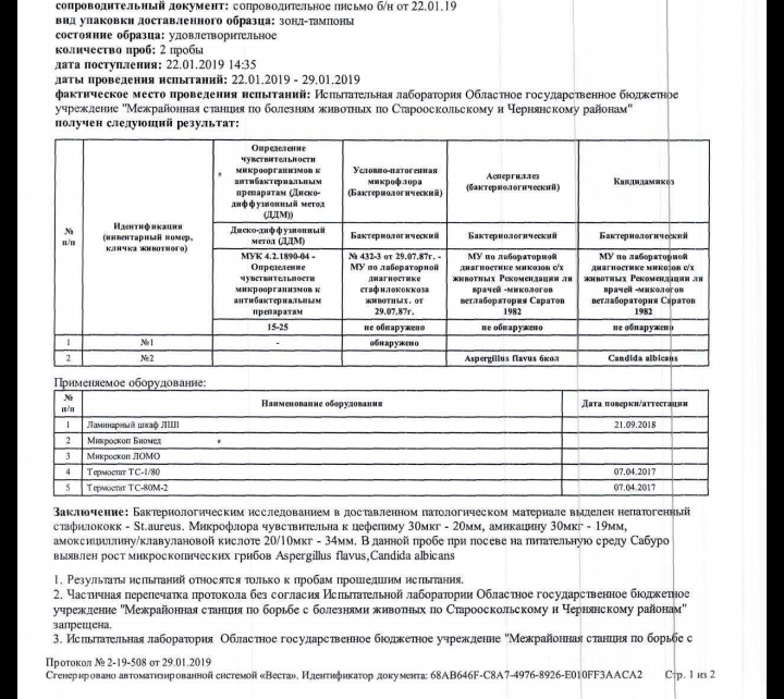 Yanam S Опубликовано 30 января, 2019 Автор #132 Опубликовано 30 января, 2019 (изменено) Нашли золотистый стафилококк, написано непатогенный. Дальше аспергилез 6 колоний, кандиду. Мазок из зева - там нашли грибы, аспергилез,обмазала палочкой зонд- золотистый стафилококк. Чувствительность делали только к стафилококку. Помет чистый. Птиц чувствует себя ттт лучше гораздо, носится, ухаживает за девочкой. Продолжаем Нистатин, Цитросепт в поилку, Бифидумбактерин на ночь. Помет нормальный, но разово были единичные непереваренные зерна в помете. И ИНОГДА помет пахнет кислым. Я так понимаю, что Нистатин нам долго пить. 2 февраля будет 12 дней как пьем. Думаю до месяца продлить. Зерносмесь Фиори пока не даю. Ест канареечное семя, чумизу, сенегальское просо, кунжут, овес чищенный и ПРОБУЕТ каши. Изменено 30 января, 2019 пользователем Yanam S