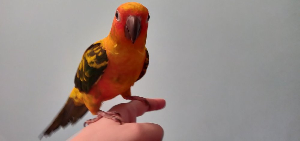iPolt Опубликовано 19 марта, 2019 Автор #3 Опубликовано 19 марта, 2019 Большое спасибо! Вот еще неделька прошла. Птица все больше привыкает. Очень, очень живенький попугай, просто шило! =) Летать не может, но очень много времени проводит на своей ветке. По ней бегает, прыгает, много висит вниз головой, пытается выковырять из пластмассового шарика бубенчик, который внутри тарахтит. Ужасно любит яблоки. Сильно возмущается, если пытаешься его на пальчик в клетке взять, но вне клетки по зову бежит сам и на руки идет хорошо. На вид птица очень здоровая и подвижная. На жердочке на боку иногда присядет, посидит, может спиной к стене прижаться и почесать спину. Спит нормально, как все птицы.