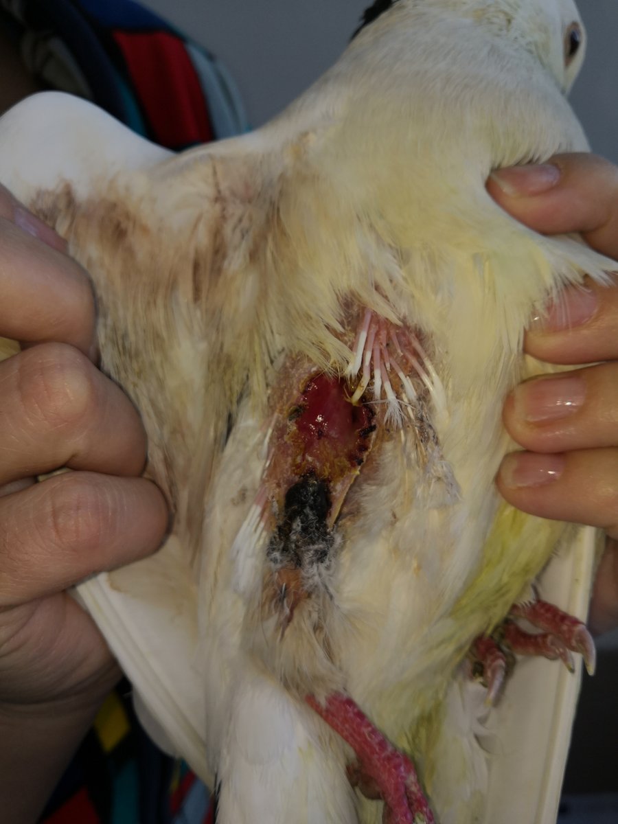 bernat Опубликовано 27 марта, 2019 #49 Опубликовано 27 марта, 2019 Антибиотик продолжайте. Здесь как минимум антибиотик 21 день нужно давать. Рану присыпайте как писала Зося, это же не сложно сделать. Посмотрите на ютубе как правильно держать голубя, как давать лекарства... Если все правильно сделать, то птица не будет вырываться и быстро успокоится. У меня птица была которую какой-то урод надпилил поперек киля болгаркой, и так как это было лето, то птица попала ко мне сильно обескровлена и гниющей грудиной, а в ране уже ползали черви. Сейчас эта птичка жива здорова и с дворовой стаей рассекает воздух. Это фото через 1,5 недели лечения. Когда птица попала ко мне, то все тело из-за кровопотери было как на вяленой рыбе. Я до сих пор удивляюсь где птицы берут силы, чтобы выживать после таких травм. Не опускайте руки, у вашей птички все намного проще. Дайте ей шанс выжить и радоваться жизни. Лекарства нужно давать обязательно, без них она не выкарабкается. И выпускать птицу в таком состоянии нельзя, это будет долгая мучительная смерть.