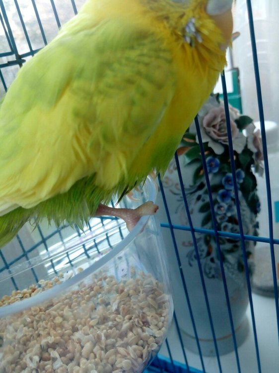 Летка Опубликовано 20 апреля, 2019 Автор #3 Опубликовано 20 апреля, 2019 2. Вид птицы: волнистый попугай. Имя-Полина. 3. Возраст и пол, а также предыстория появления в доме: 3 года живет нами. Самка. Приобреталась в зоомагазине "Лемуррр" будучи птенцом. Приобреталась в пару к самцу (потом выяснилось что он - самка, но они ладили, так и жили), потом по определенным обстоятельствам пришлось забрать у родственников волнистика самца. Подселила к ним в Сентябре прошлого года. Теперь Полина с ним в паре обитает. Сейчас она содержится в отдельной клетке. 4. Рацион: Кушают корм "РИО основной рацион" (в корм добавляем уголь древесный JR Farm, Абиссинский нуг "РИО", ракушечник с анисом). Первые 2 года "Радостин антистресс" капали в корм. Сейчас (по рекомендации орнитолога): 5-й день "Гамавит" 1 мл в поилку на 100мл воды. Минеральный блок для птиц Flamingo. Еще давали глиноземный камень JR Farm, но птицы стачивают его моментально и он просто осыпается кусками. Иногда: Fiory палочки с яблоком, с яйцом, Versele Laga палочки с медом фруктами и ягодами, Padovan Stix Herbs палочки с травами, РИО палочки с тропич.фруктами, РИО Сенегальское просо в колосьях. Корень одуванчика сушеный (но это больше как игрушка для нее была, таскала в клюве, купала в купалке). Каши (рис, гречка, пшено) вареные без соли, пыталась приучать посыпав сверху обычной зерносмесью, зерна выбирают, кашу не особо едят. Яблоки часто даю - точат, морковь даю - не очень едят. Воду в поилки бутилированную "фруто няня", но муж мог и из под крана и фильтра налить в купалку, птица могла пить оттуда, и корма иногда насыпал больше чем необходимо. 5. Условия содержания птицы: Птица живет в клетке (81x47x176 см), стоит у окна (на период лечения отсадила в малую клетку). Температура в комнате 20-23 градуса. Влажность-достаточно сухо. Длина светового дня: 13-14 ч. В квартире живет кошка. Растений нет. "Химия" в помещении: запах Уайт-спирита был, был ремонт в одной комнате, в связи с этим было много пыли (птицы были в другой комнате). 6. Настораживающие вас симптомы: Живя отдельно больше молчит. Во время лечения хохлится меньше. Лапку как обычно поджимает под себя, когда сидит и когда спит. Когда кушает стоит на краю кормушки двумя лапками. 5 дней назад часто делала характерное для отрыгивания движение головой, иногда отрыгивала зерна, последние 2 дня такое происходит реже. В целом птица менее активна чем раньше. Отечность на пальчиках лапки. По наблюдению: птице не комфортно последние последние 3 дня наступать на лапку, пытается отгрызть мертвые пальцы. 7. Как давно птица болеет: 12 дней назад заметила черные пальчики. С точностью когда это началось затрудняюсь сказать. 8. Если птицу уже лечили? то, пишите: Ранее не лечили. Только последние 5 дней (по рекомендации орнитолога): "Гамавит" 1 мл в поилку на 100мл воды, Ветом 1.1 - на кончике ножа в поилку на 100мл воды, Карсил и Нистатин по 1-й таблетке на суточную дозу зерносмеси. И как я уже писала "Травматин" по 1 капле в клюв 2 раза в день, "Троксевазин" местно 2 раза в день. Это врач порекомендовала сегодня: (сначала обрабатывать лапу теплым хлоргексидином, затем раствором диоксидин 3 мл.+новокаин 2% 1 мл. - 3-4 раза в день, и после этого сразу мазать мазью "Ируксол". Все мазать 3 дня.) - ЭТО еще не делали, т.к. Ируксол не нашла. Вместо него порекомендовала "Левосин" 9. Фото помета (за сегодня) и фото самой птицы прикрепляю. 10. Любые подробности в части содержания