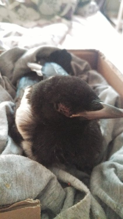 Colonhoe Опубликовано 13 мая, 2019 #1 Опубликовано 13 мая, 2019 Здравствуйте. Вчера вечером подобрали маленького сороченка. Он очень слаб, все время спал, даже голову держать не может. есть информация, что он, возможно, просидел на ветках, прежде чем упасть, около двух дней. Кормили мешанкой из фарша, гречки, моркови и Перепелиных желтков, поили водой, дали немного детских витаминов. У неё в основном жидкий помет и ещё она отрыгнула еду, что дали сегодня утром. Помогите, чем кормить сейчас лучше?? Ещё у неё ранка под глазом и глазик почти не открывает, все припухло. мы это место ей обрабатываем хлоргексидином и ещё дали ей капельку, около 0.1 мл детского ибупрофена, так как вчера показалось на осмотр, что у неё припухлый бочок, как от ушиба