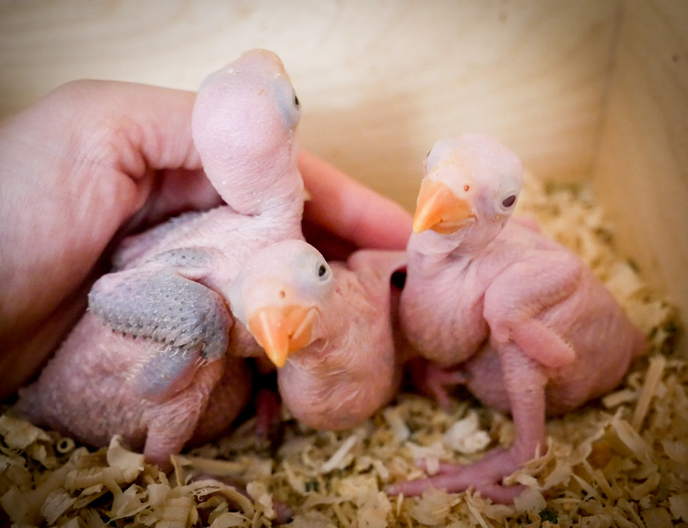Pola Опубликовано 31 мая, 2019 #1 Опубликовано 31 мая, 2019 Итак Давно не писала на форуме, много чего произошло. Но, главное - у меня по-прежнему живут птицы. В этой теме речь, про мою славную пару голубых ожереловых. Самца мне подарила подруга, он после квартирного содержания, но в идеальном состоянии, всегда был хороший уход. Ему лет 10 примерно. Живет у меня четвертый год. Самка от форумчанина Kain, помоложе самца. Зовут их Мипо и Голубка Эти ребята кладут у меня яйца третий год. В прошлом году неудачно, никто не вылупился. А в позатом было два малыша. Прекрасные дети, голубого цвета, точно такие же, как родители. Я, собственно, такими их и ждала. Но вот что интересно! В этом году я опять поставила им домик. Они отложили свои стандартные три яйца (всегда несут по три, просто первый раз 1 было неоплод) Из них уже (ТТТ) вышло три малыша. Все опять прилично, спокойно, дети добросовестно выкармливаются, мне опять дают их тискать, подкармливать и делать ручными в своё удовольствие))) Но средних кроха... с розовыми глазами! Совсем не ожидала этого, если честно! Думала голубые так и будут давать голубых малышей. Очень не терпится увидеть его первые перья))) ТТТ. Интересно какие гены скрыто могут нести родители? Какой-то осветленный малыш? Альбинос? Никто не сталкивался? 1