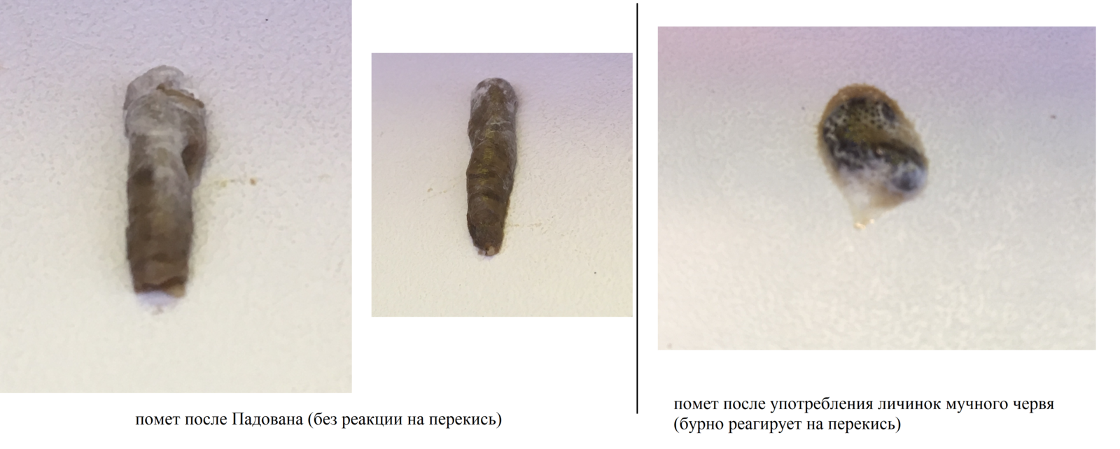 Aldanka Опубликовано 17 июля, 2019 Автор #19 Опубликовано 17 июля, 2019 (изменено) Я, конечно, понимаю, что мои "юннатские заметки" могут быть тут лишними, но до меня только что дошло, что в помете птицы на перекись реагирует не кровь. Сегодня нарезала зофобаса и положила его живым на салфетку, он выделил какую-то бесцветную жидкость, которая к вечеру потемнела. Она дает бешеную реакцию с перекисью. А помет - нет. Я перепроверила на живых личинках - из них при опасности действительно выделяется какой-то секрет, бурно реагирующий с перекисью. Я уже не знаю, можно ли этими тварями кормить нашу птицу. Завтра купим безобидных личинок "мучного червя" Изменено 17 июля, 2019 пользователем Aldanka