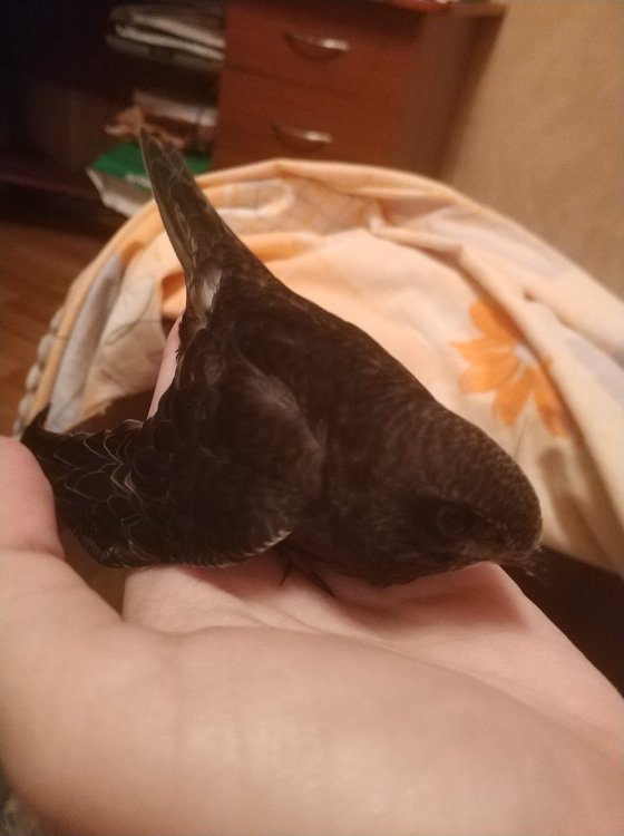 Janegam Опубликовано 1 августа, 2019 #1 Опубликовано 1 августа, 2019 (изменено) Помогите, пожалуйста. Это мой второй птенец стрижа, вот так повезло, что уже второй раз за лето подбираю. Первый успешно улетел, а со втором до сих пор проблемы. Даже не знаю, что делать. Сначала у птенца были проблемы с крылом, он его волочил, старался не опиратся на него, первоначальный вес был аж 34 грамма, я начала постепенно его выкармливать, ведь он дрожал, был холодным. Постепенно стриж шел на поправку (кормила сверчками домовыми мороженными, предварительно чистила их, так же добавляла в рацион мраморных тараканов). Еще купили травматин, давали по капле два раза в день, сделали рентген, переломов нет, скорее всего ушиб - т.к. птица уже расправляет урыло и держит его почти так же, как и здоровое, не волочит (только в очень редких случаях). Кушаем мы все время принудительно, хотя иногда случаются прорывы и мы даже заглатываем пищу сами, не приходится ее пихать глубоко в горло. Как только вынимаю из коробки птица сразу начинает активно пытатся куда-то уползти, но я ее не пускаю, кормлю в полотенце. Но сейчас вечером она вроде начала засыпать, а потом вновь шебуршала в коробке, скреблась. Я проверила, и вижу совершенно разный стул - белый, жидковатый, несколько штук, кое где виднеется темная змейка. Потом, более свежее что-то похожее на капсулку. Начала проверять, что случилось, она выдала просто темный комочек без белой части и с жидкостью. Понюхала весь помет - резкого запаха нет, только влажным полотенцем пахнет, и может чуть чуть насекомыми. Подскажите пожалуста, это может быть инфекция? Что делать? Еще прикрепляю рентген, вдруг что-то просмотрели, и фото самой птицы. (Вес сейчас 38 г, взвесила только что) Изменено 2 августа, 2019 пользователем Janegam