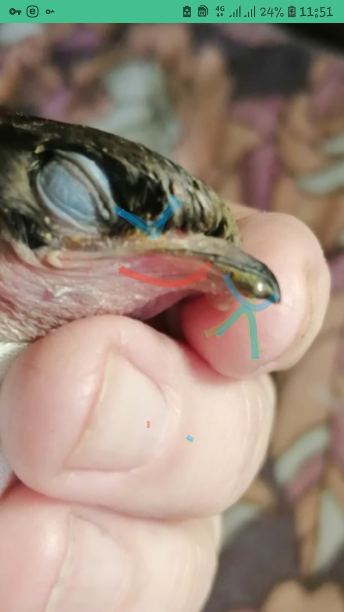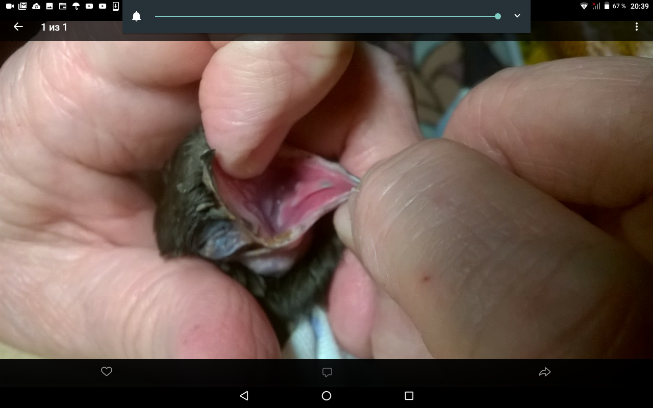 ЕленаСаров Опубликовано 5 января, 2020 Автор #68 Опубликовано 5 января, 2020 @Litera снова здравствуйте. С Новым годом и Рождеством, и всех благ Вам и близким. Мы со стрижулей снова нуждаемся в Вашей помощи, к сожалению. Снова с клювиком. Новое повреждение клювика появилось около месяца назад. Мне пришлось уехать на три дня. Шустрик был с женщиной, выкармливавшей стрижей. Но Шустрик не захотел иметь с ней дело, верещал, вырывался, плевался. Некоторый минимум удавалось скормить. Жив остался, но похудел граммов на 5. И уголки ротика воспалились. Я пыталась с этим справиться. Протирала Хлоргексидином, позже окомистином. Смазывала корнерегелем. Лучшело, отходили корочки. Но вот дня два назад я заметила, что с одной стороны слизистая побелела. Дома оказалась внучка, удалось ротик сфотографировать. Очень тревожусь, что это и как справляться. Зрение плохое. Только на фото увидела корочку и с его левой стороны, изнутри. Сегодня ватной палочкой с окомистином эту корочку сняла. Фото делали вчера, внучка уехала, пока больше фото не сделать. В целом стрижик бодрый, подвижный. Но кушает только принудительно. Буду благодарна Вам за советы. Прикладываю все имеющиеся кадры, чтобы можно было понять, где блики, где что-то иное.