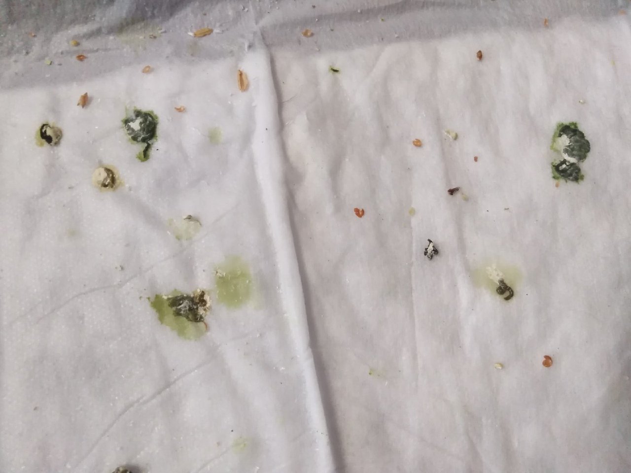 Помета за день было мало (т. к. почти не ел), но жёлтых "луж" значительно меньше.