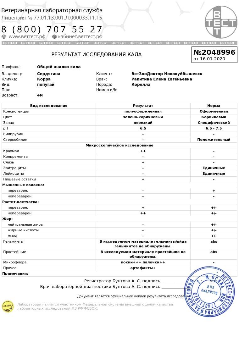В пятницу сдадим помет повторно на анализ, дабы понять есть ли какая-то динамика.