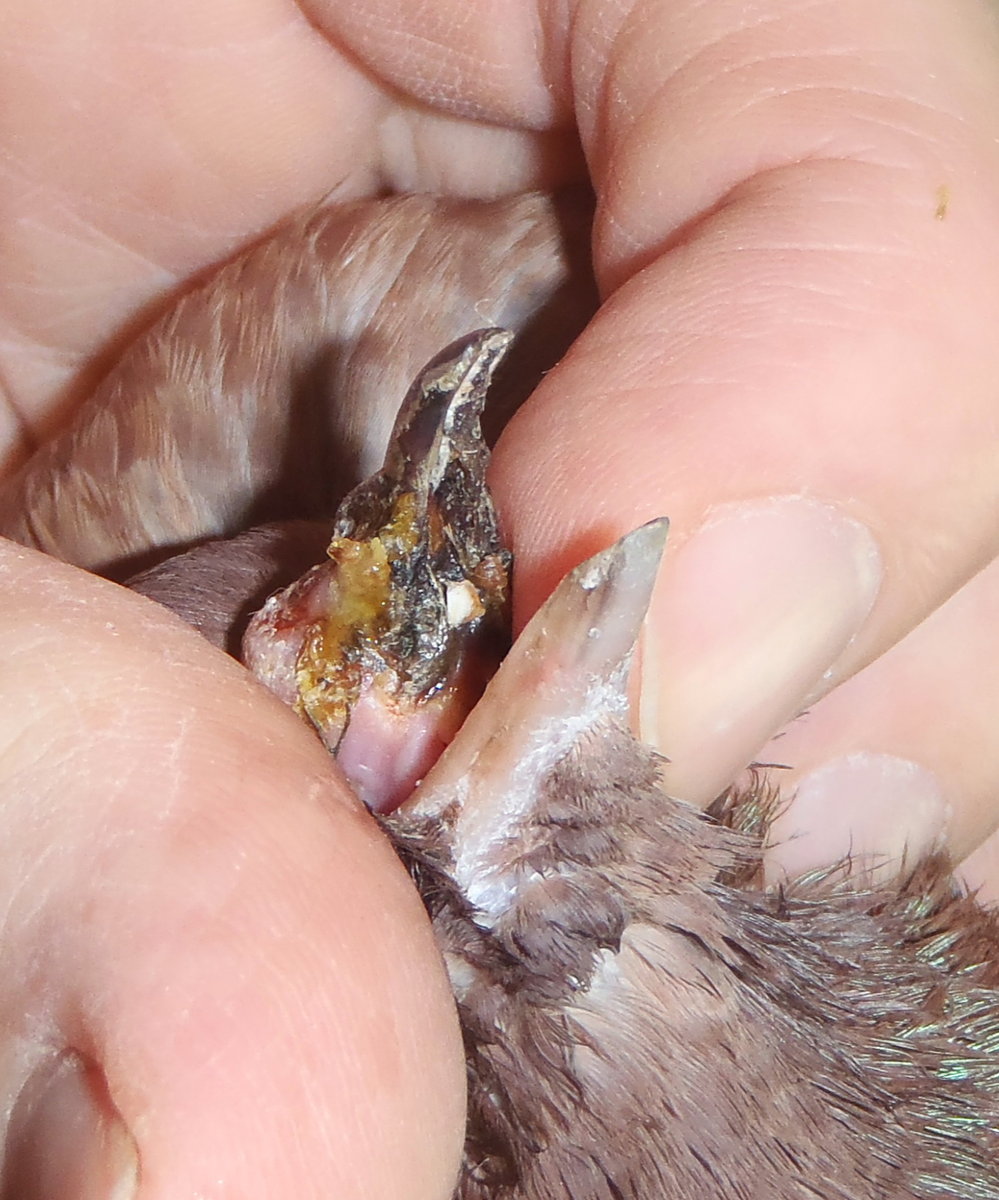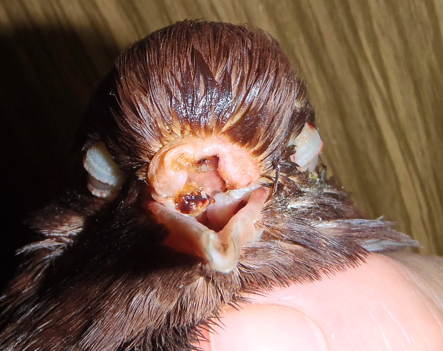 voyagyur Опубликовано 7 февраля, 2020 Автор #27 Опубликовано 7 февраля, 2020 (изменено) Здравствуйте,друзья! Как и предполагалось,у бедолажки Искорки отторглось надклювье вчера утром, да еще и с фрагментами костей черепа.Похоже,оно доставляло птичке неприятные или болезненные ощущения,т.к. она все время чесала лапкой щечку ближе к клювику,даже , когда еще на улице была.Надежды,что уцелела зона роста и надклювье отрастет,увы нет.Ранку орошаю хлоргексидином.Язычек находится в подклювье как в лоточке,где скапливается слюнка и постоянно влажный,надеюсь смазывать не нужно будет.Отечности и сильного воспаления нет.Кормлю пока через зонд кашкой,чтоб в ранку не попала грязь от зерна и посторонние частицы.Птичка сразу после первого кормления все поняла и сама открывает ротик,когда видит шприц.В общем,старается мне помогать.УчИться клевать зерно из глубокой посудки,будем когда затянется ранка.Птичка принимает доксициклин,орнидозол,флуконазол и нистатин.И еще гепатовет,бифитрилак и витаминки чиктоник. Посоветуйте пожалуйста,чем еще могу помочь бедной птиченьке. Снимки прилагаю.Зрелище конечно душераздирающее.Глазки зажмурены из-за фотовспышки Изменено 7 февраля, 2020 пользователем voyagyur