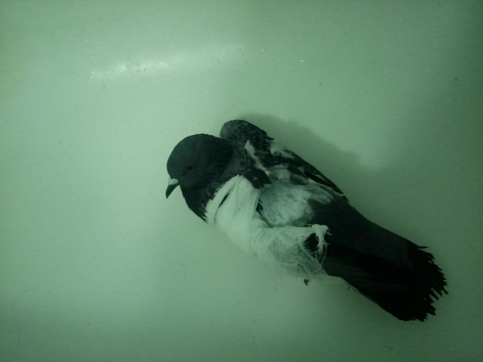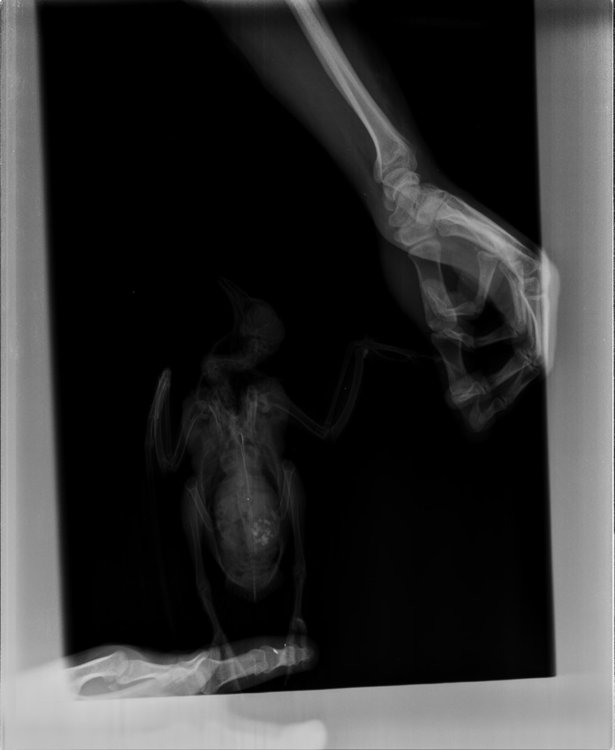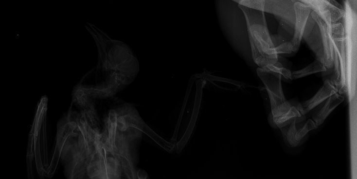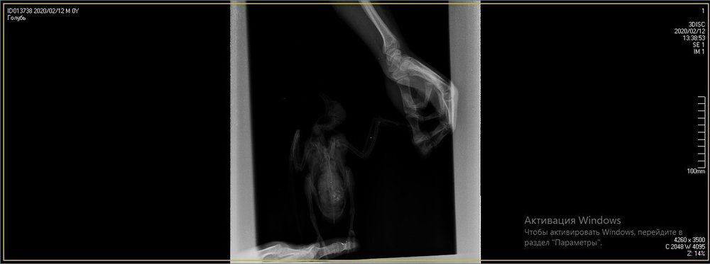 Duch Опубликовано 30 марта, 2020 #1 Опубликовано 30 марта, 2020 Здравствуйте! Приютился у нашего офиса, примерно 2 месяца назад, голубь и никак не улетал. Сделали вывод, что проблемы с крылом, т.к. левое он странно прижимал к себе. Положили в коробку, налили воды, насыпали гречи. Отогрелся спустя неделю, но крыло так и прижимал к себе. Предположили перелом крыла. Отвезли к орнитологу, сделали снимок (прикрепили к топику). Общий осмотр весьма позитивен, на снимке перелома нет. Выписали уколы витаминов и обезболивающих. Прокололи курс недели 2 назад - без изменений. На данный момент крыло так и прижимает к себе, огрызается, когда ему сыпят корм или доливают воды. Иногда клюёт и бьёт крылом, но только правым. Пока ждём выхода орнитолога из очередного отпуска, стараемся за ним ухаживать. В прошлую пятницу насыпали ему корм и подлили воды в плошку. Приехал в субботу вечером, дабы проведать. В итоге, он за целый день ничего не съел и не пил. На мои касания никак не реагировал: вжался в себя и стоял напуганный. Взял на руки, дабы осмотреть, как из под него показалась муха/слепень и тут же скрылась. Погуглил - оказывается, это - кровососки. Купил в ветеринарном отделе ампулу с препаратом, которую следовало разбавить 1,6л воды. Опрыскал её под крыльями, напоил водой из шприца и оставил так на день. Судя по корму, начал немного есть и пить. Кормплю гречкой, рисом и разваренным пшеном из шприца. Но сегодня обратил внимание, что он, когда клюёт сухой корм, как бы, промахивается и не может заглотить крупинку - гречка отскакивает в сторону и пытается еще раз захватить другую, но результат тот же. При всем при это, он четко видит мою руку и реагирует на неё соответствующим образом, т.е. слепоты нет Очень рассчитываю на вашу помощь! Ранее не имел опыта ухода за птицами