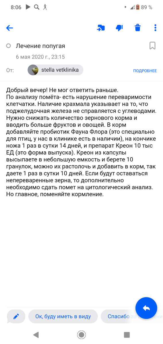 Av.viki Опубликовано 4 мая, 2020 Автор #7 Опубликовано 4 мая, 2020 6 часов назад, KamaRo сказал: @Av.viki ведите все в одной теме, иначе какая то потеряется. 5 дней антибиотика ничтожно мало (2-3 недели, а некоторые курсы 8 недель), непонятно что лечили, но грибы развели (про нистатин писала). Подагру устанавливают либо по микроскопии помета (кристаллы мочевой кислоты ищут), либо по анализу крови (биохимии) на ту же мочевую кислоту. Проведенное лечение к подагре не имеет отношение. Пробиотики дают 14 дней, а не 2 дня. Итог лечения - слетела поджелудочная. Такое лечение на долго принести эффект не может (курсы не лечебные). Дексаметазон может "взбодрить", но вопрос на долго ли.