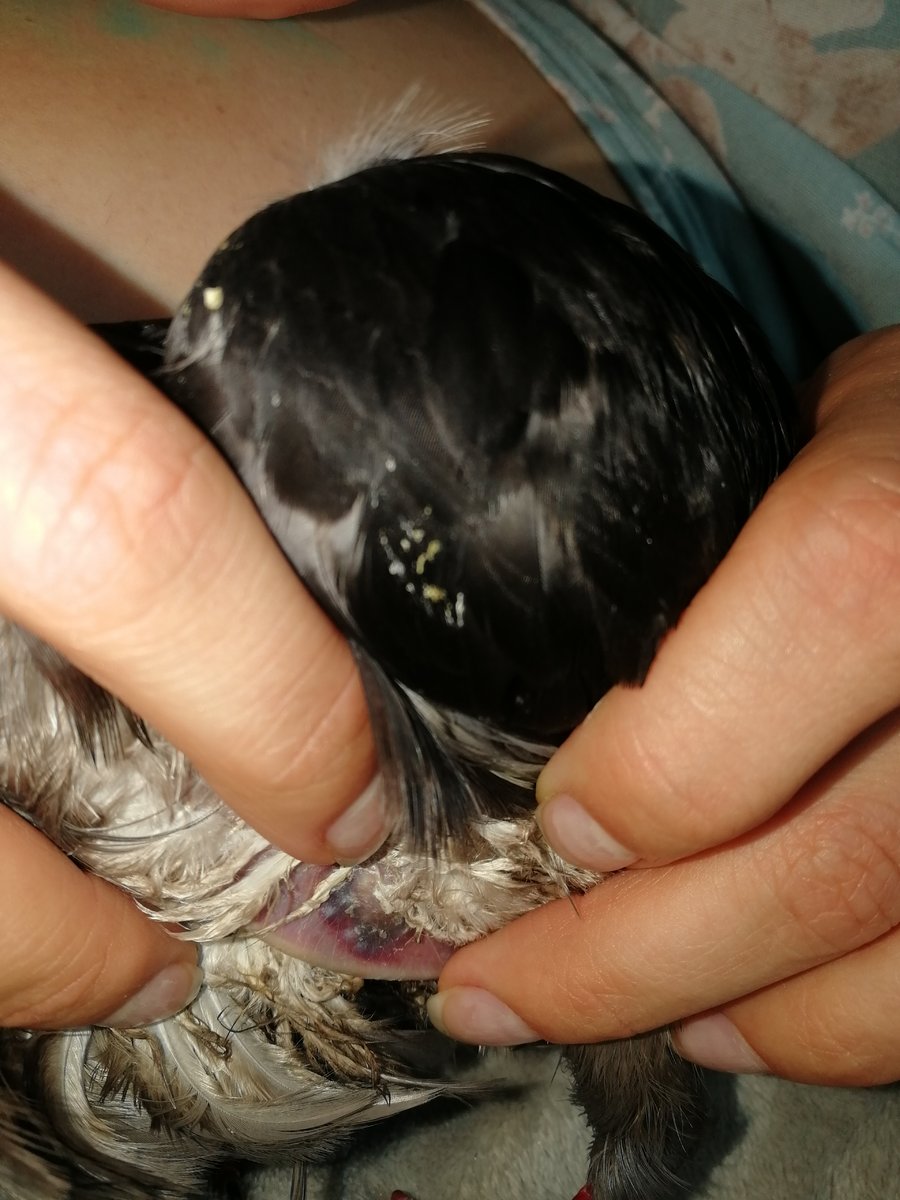 Элен Куригина Опубликовано 24 июня, 2020 Автор #83 Опубликовано 24 июня, 2020 Рвоты больше не было. Помет стал ярко зелёный (после оранжевой чечевицы). Сейчас даю меньше еды раза в два: 2 чайных ложки чечевицы и чайная ложка пшеницы. Страшная гематома рассасывается (когда малыш дёрнулся и я укалола два раза супер неудачно) на гепарин + бетадин. Была вот такая: Сейчас почти исчезла. Получается меньше чем за неделю точно сойдёт. Еще одна проблема - сухие лапки. С них уже кожица слазит. Подушечки с наростами. В месте, где сходятся пальцы - мягкая кожа. Мажу вазелиновым маслом раз в день, но, как понимаю, нужно чаще. Голубь очень много пьёт может его сушит и поэтому заодно лапы сохнут? Помню, что птицы много пьют ещё при вертячке. А он у меня как раз темечком в пол. Левое крыло по-прежнему подвисаешь. Его перевязываю, чтобы не раздирал рану. Мажу бетадин ом раз в день. Выделения из бывшего правого глаза вроде бы меньше. Шишка не уходит. Продолжаю лечение. Левый глаз последние два дня всегда впалый. Раньше он хоть чуть-чуть "наполнялся". Вот, собственно так сейчас дела у моего страдальца. Очень волнует этот странный нарост из поста выше.