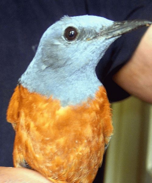 Фото 2. Пестрый каменный дрозд-первогодок одевает весенний наряд.