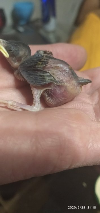 Наталия Ф Опубликовано 30 мая, 2020 #1 Опубликовано 30 мая, 2020 Пару дней назад дети нашли птенца,гнездо мы не нашли,поэтому забрали малыша.Не знаю как должен выглядеть живот у птиц такого возраста,но он меня сильно смущает.Мне кажется и птенцу он доставляет дискомфорт.У знакомых ветеринаров тоже не получила должного ответа,орнитолога тоже пока не нашла.Боюсь,что птенец не выживет,сегодня какой-то вялый. Начала инфо в интернете,что кормить можно варёным яйцом,фаршем,ягоды,яблоки,дафния,гамарус,размоченный корм для котят и щенков.